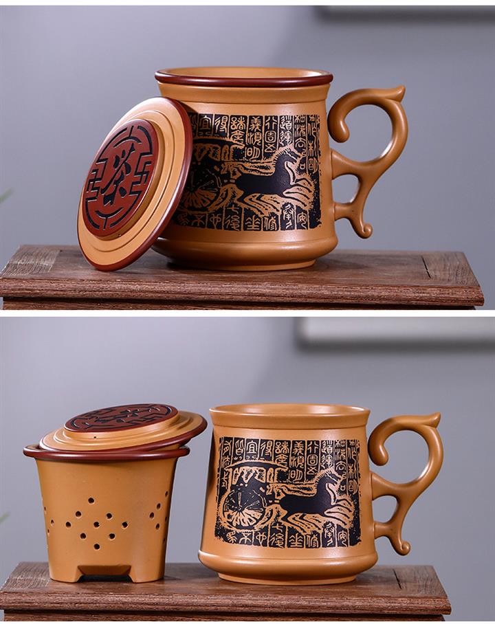 三件套紫砂內膽蓋杯全手工秦頌泡茶杯茶具過濾網杯子pot3810