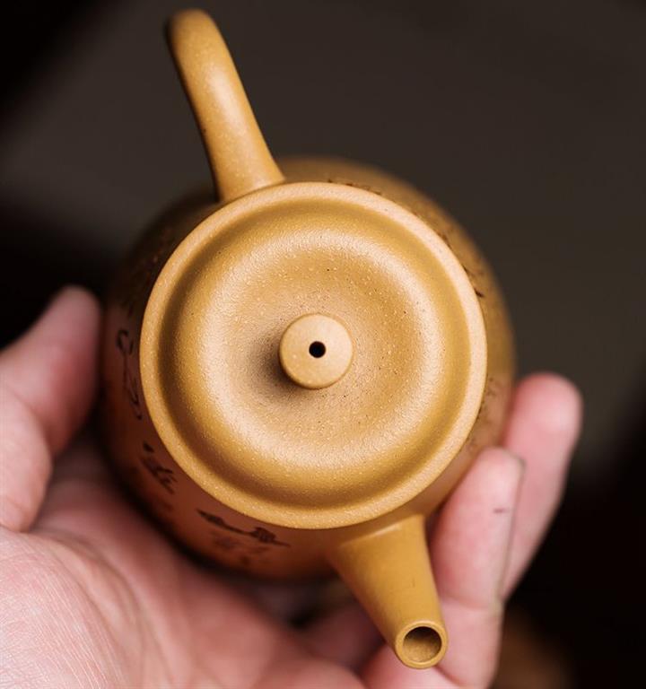 原礦紫泥純手工刻繪觀滄海漢瓦壺紫砂壺200cc pot3733