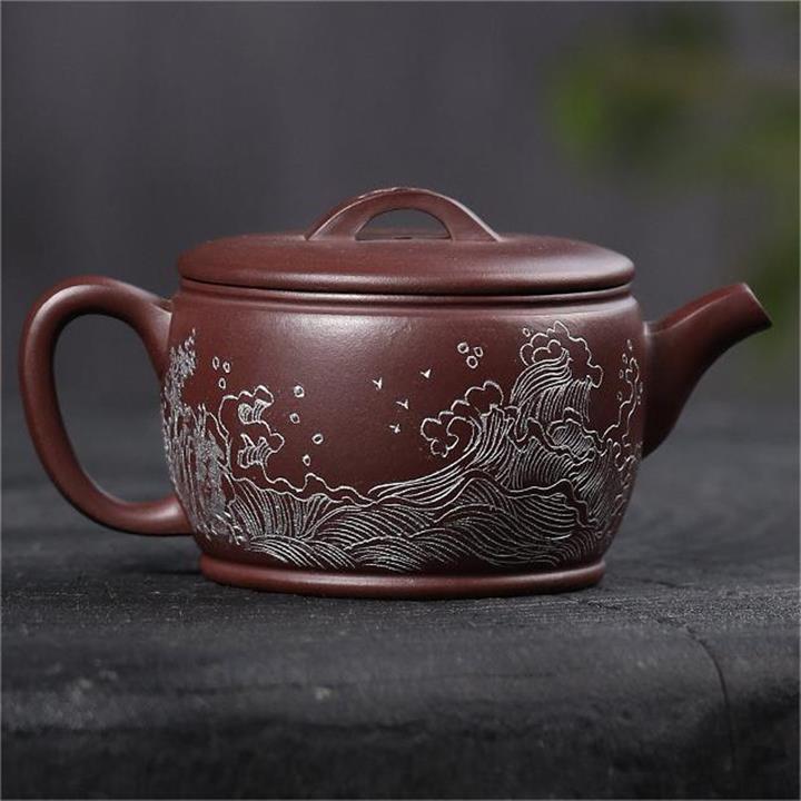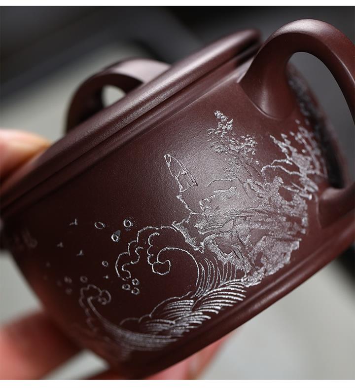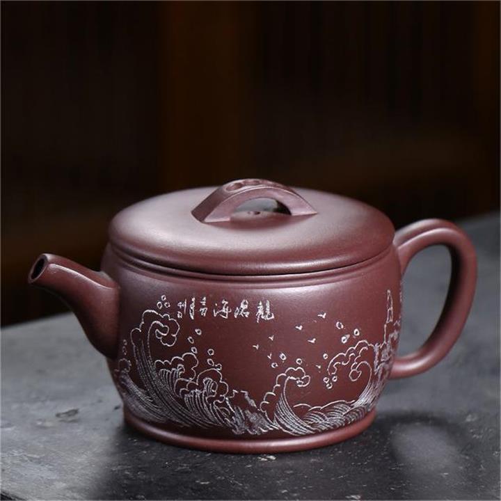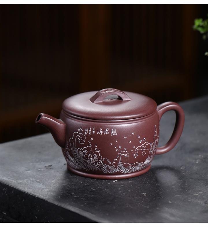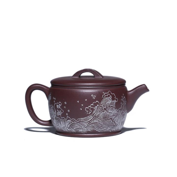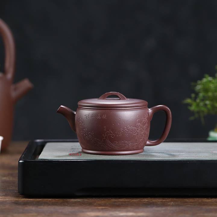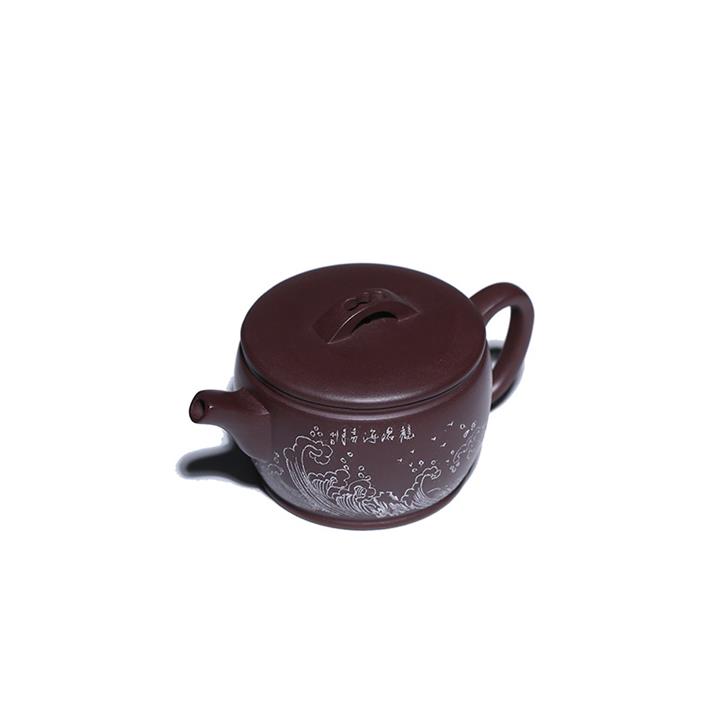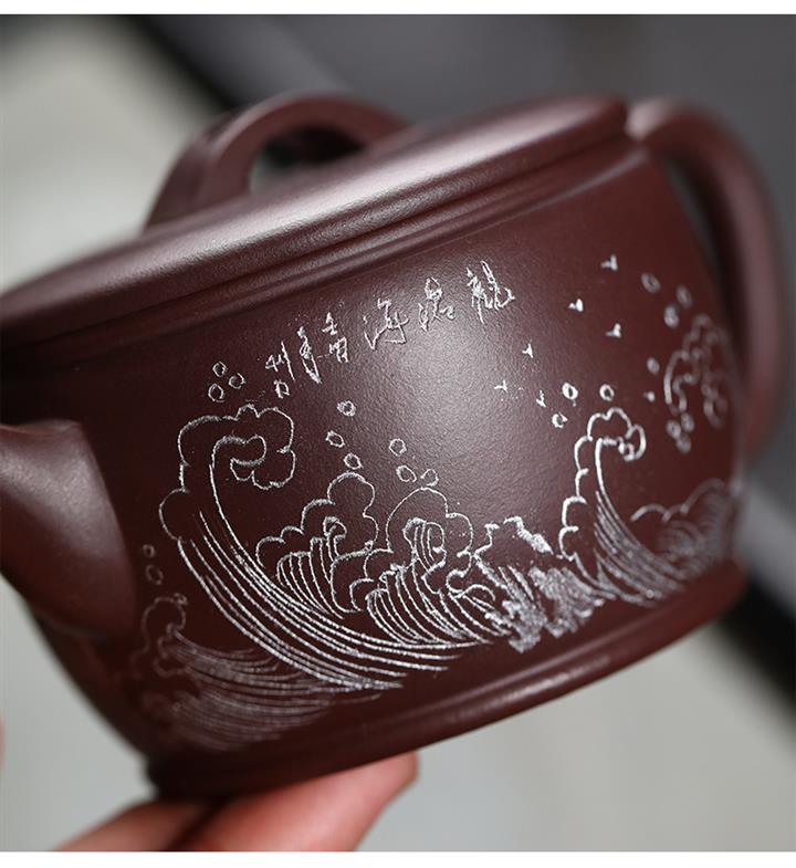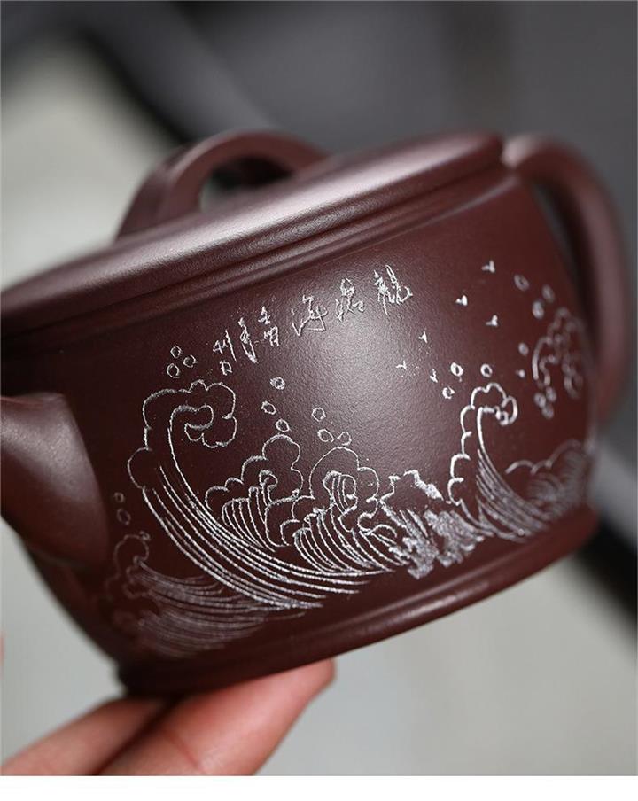 原礦紫泥純手工刻繪觀滄海漢瓦壺紫砂壺200cc pot3733