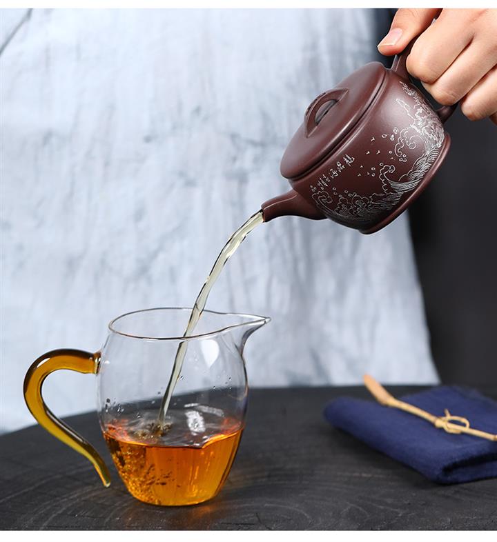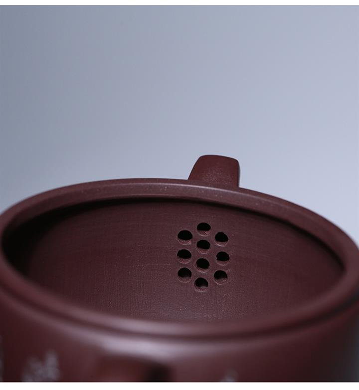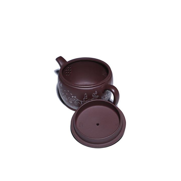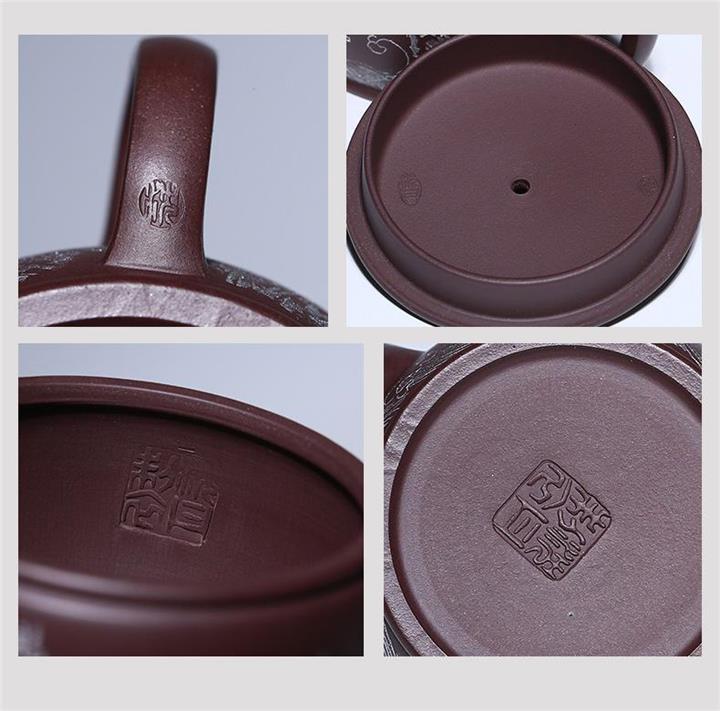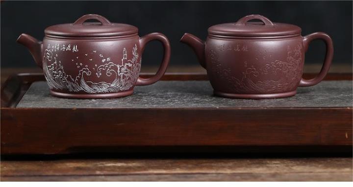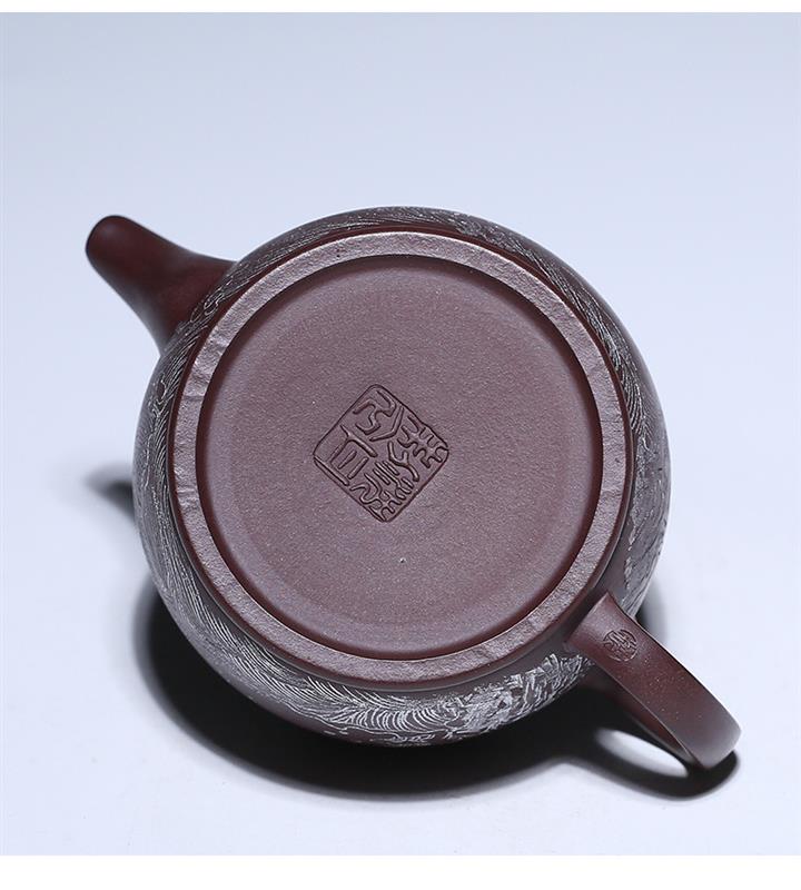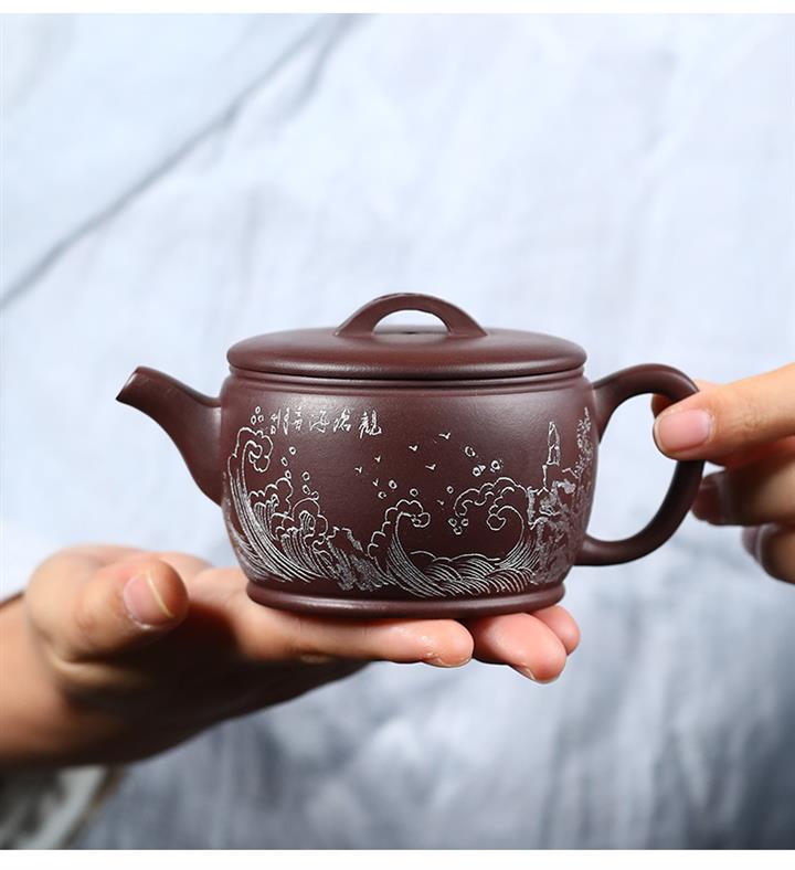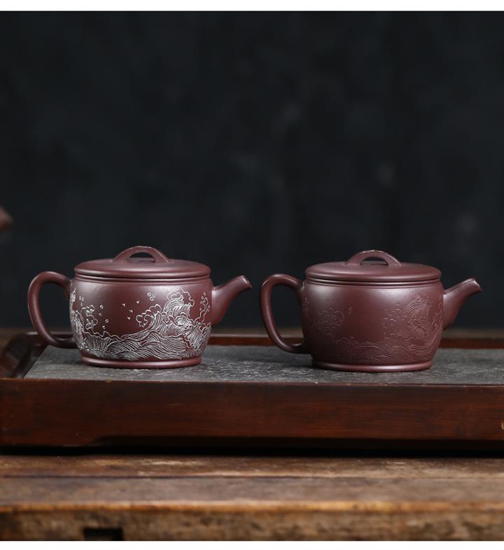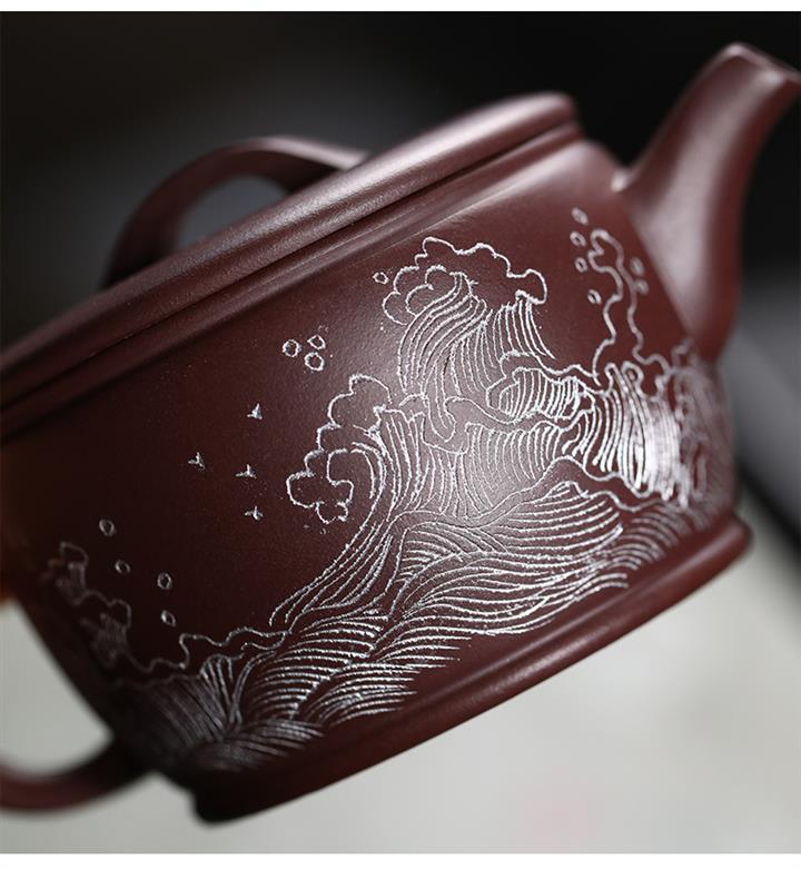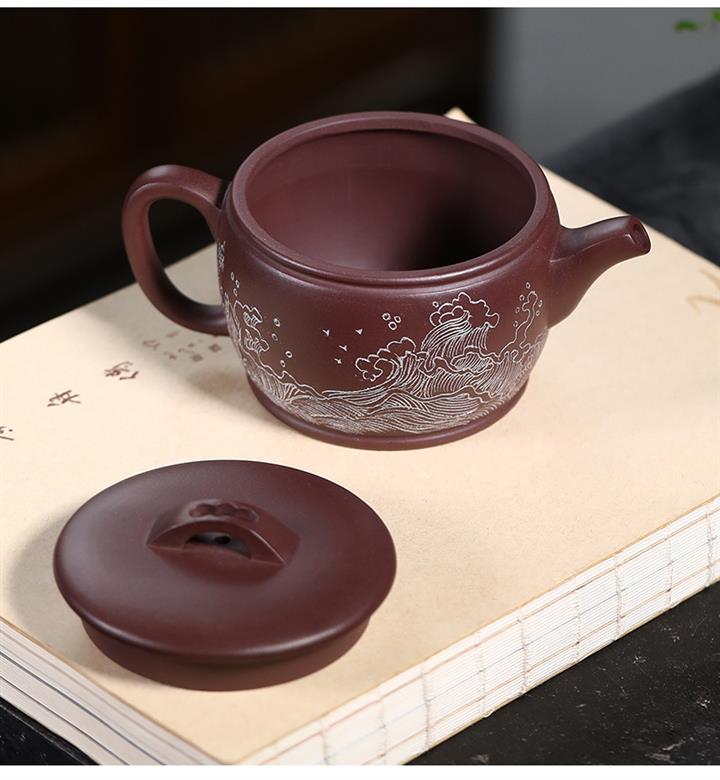 原礦紫泥純手工刻繪觀滄海漢瓦壺紫砂壺200cc pot3733