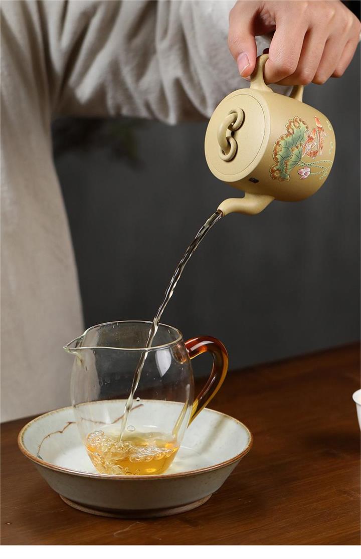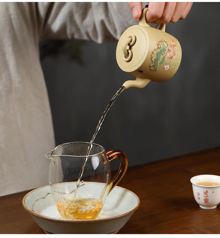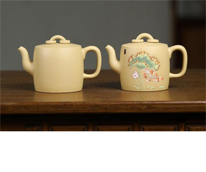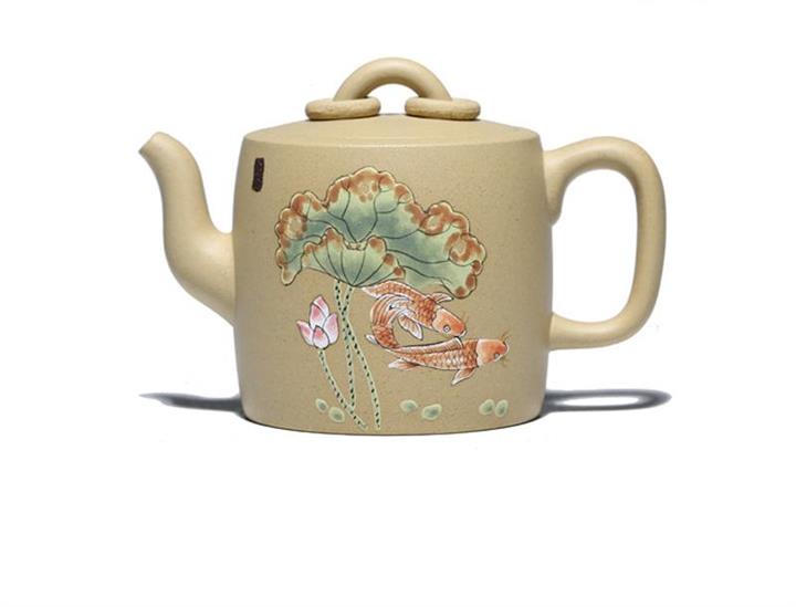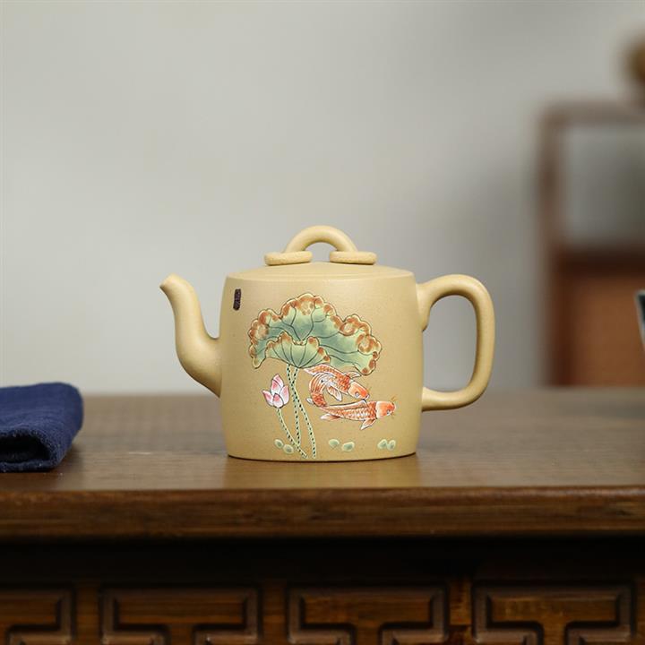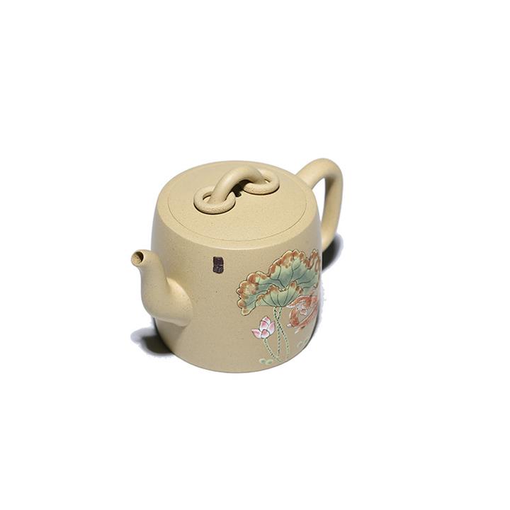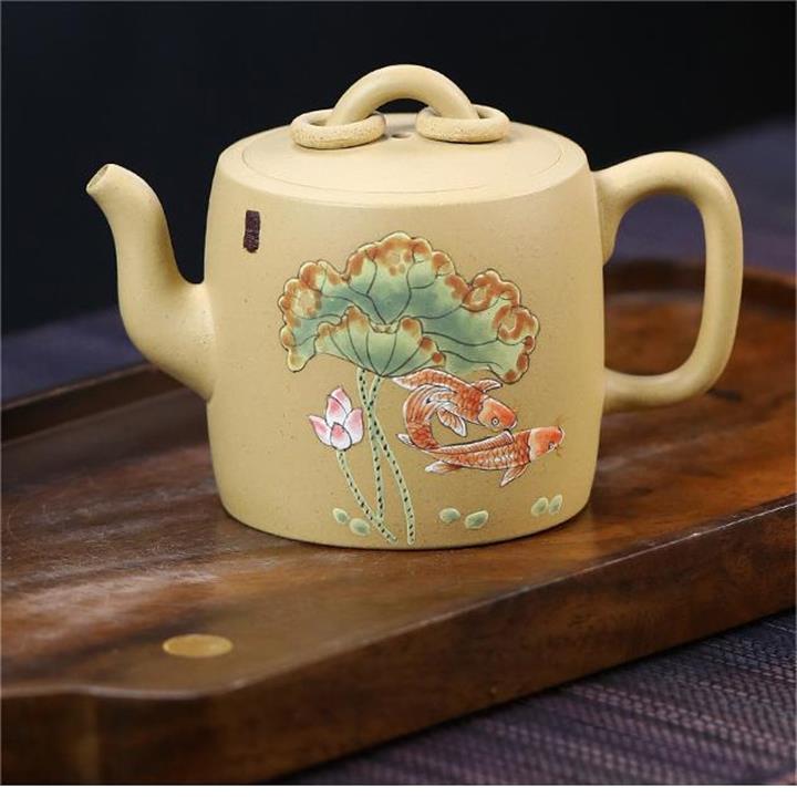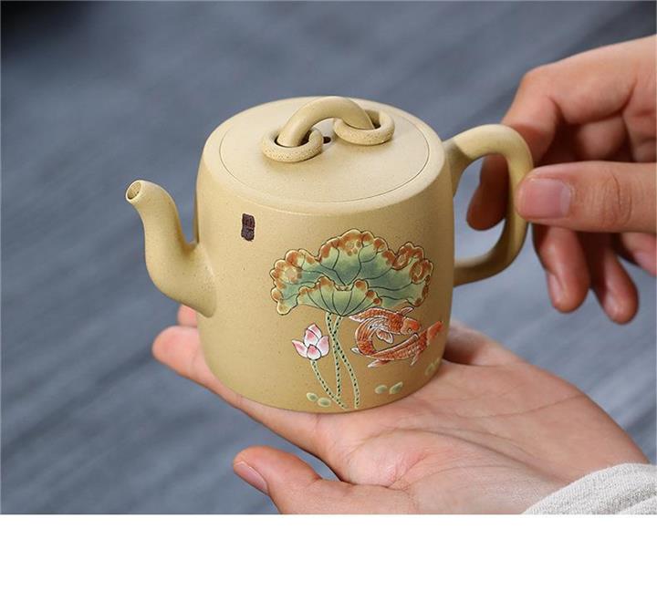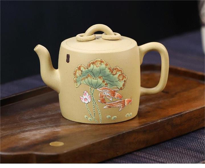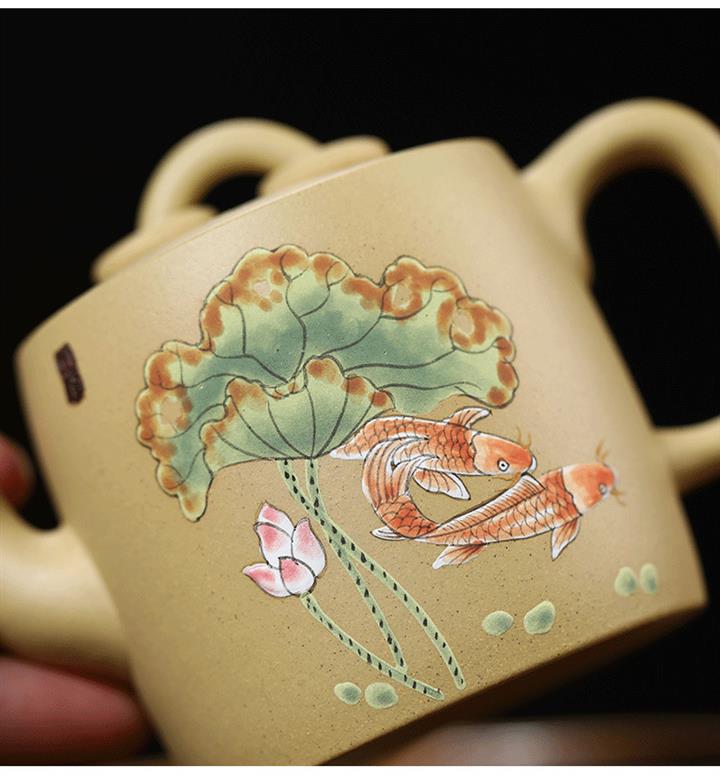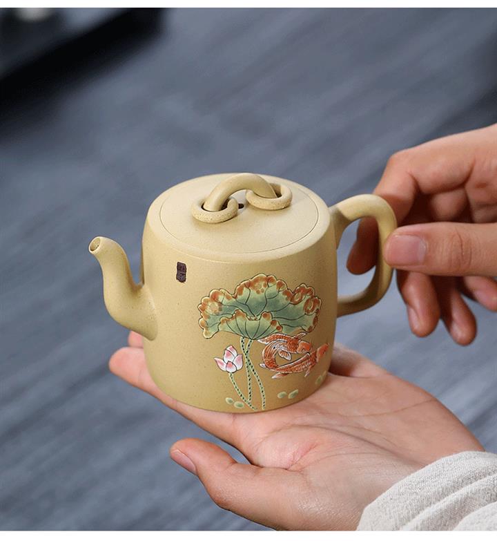 原礦本山綠泥雙圈壺純手工泥繪荷葉錦鯉紫砂壺180cc pot3736
