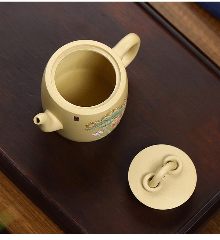 紫砂壺茶壺名家全純手工貼花泥繪原礦清水泥松果花壺POT3916