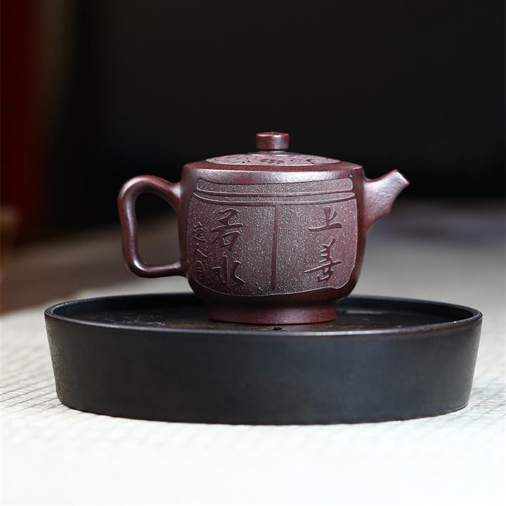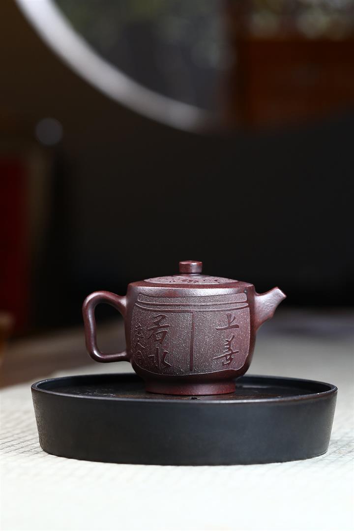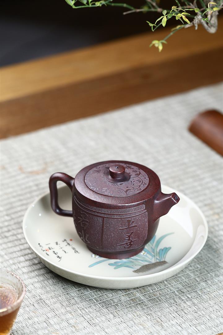 原礦古紅泥名家手制茶壺井欄紫砂壺250cc pot3740