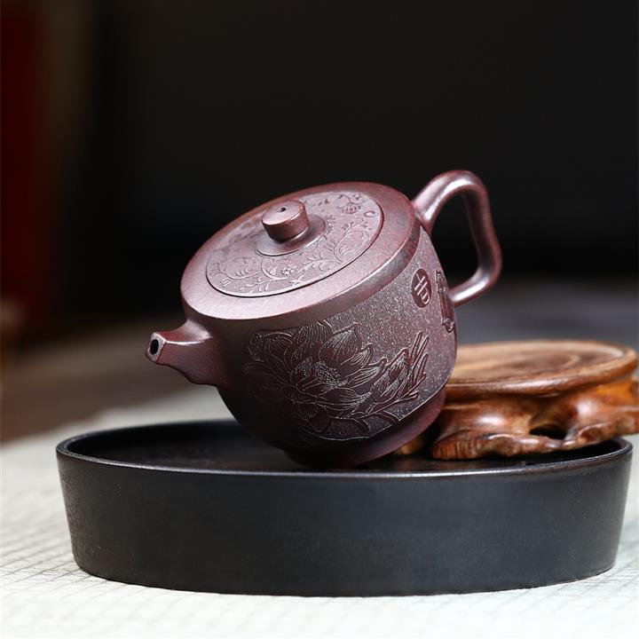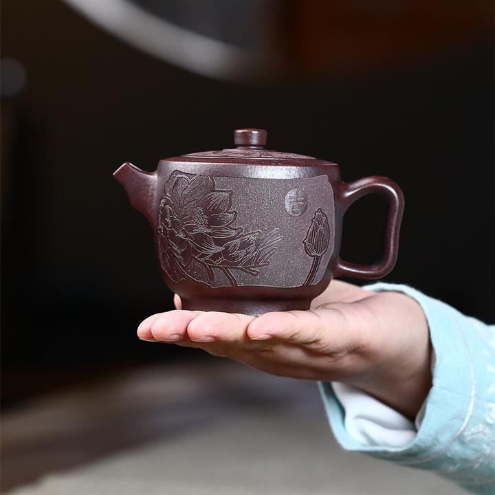 紫砂壺茶壺名家全純手工貼花泥繪原礦清水泥松果花壺POT3916