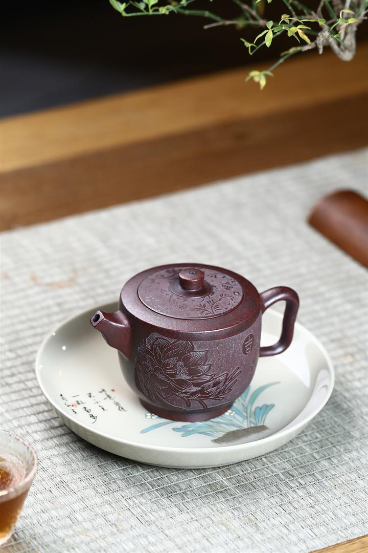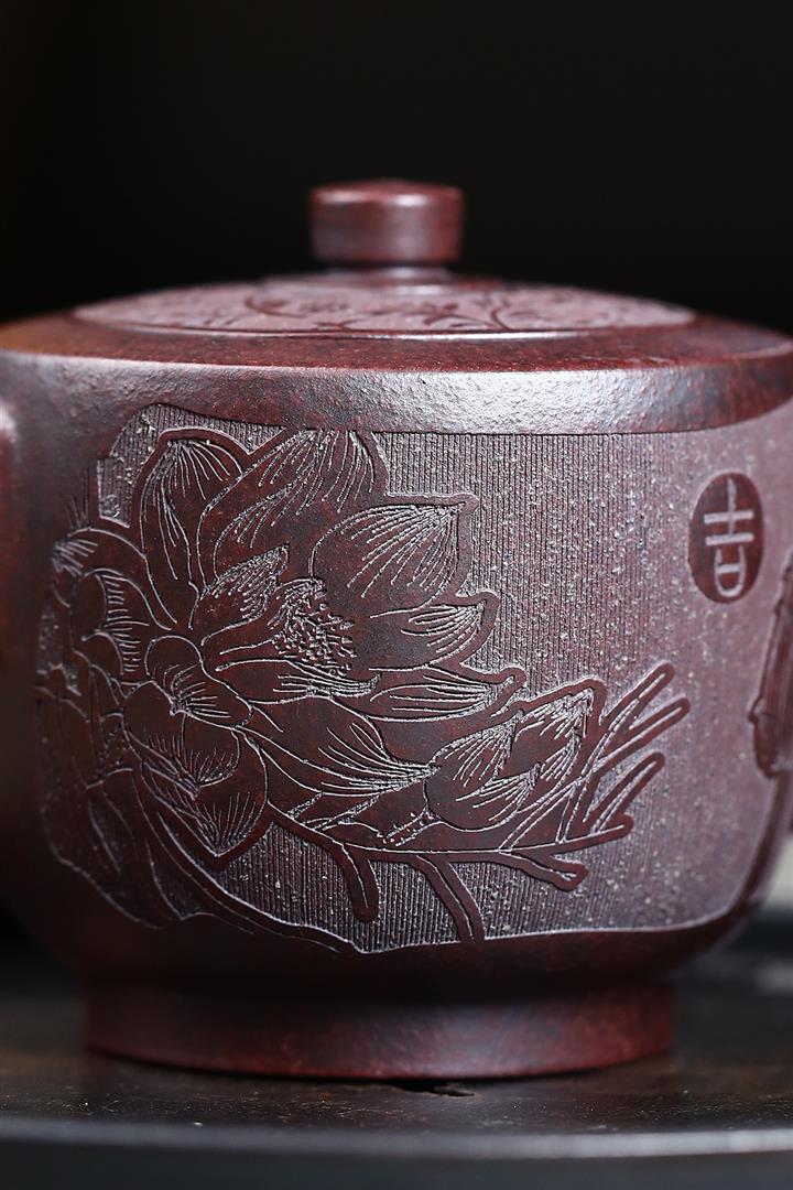 紫砂壺龍瑞祥獅全純手工刻繪原礦紫泥POT3917