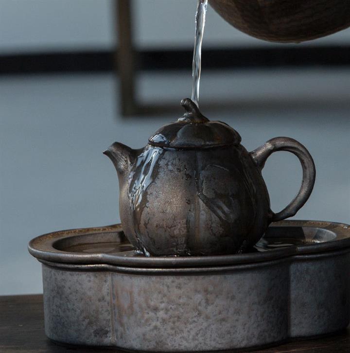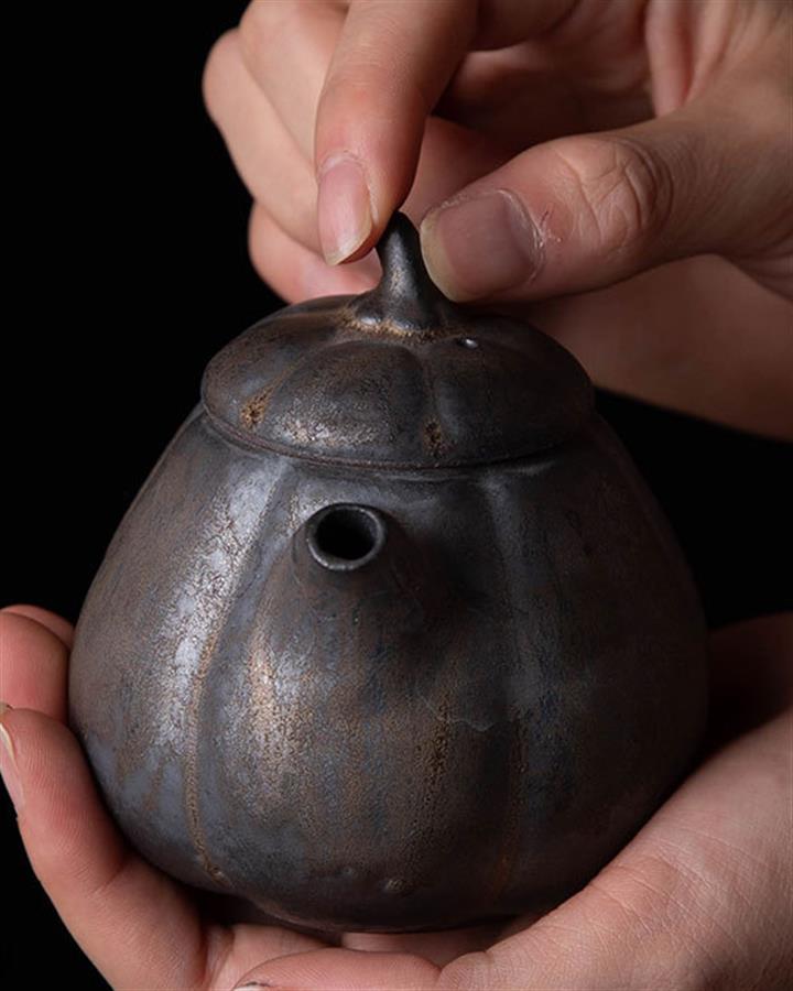 器溫復古陶瓷鎏金南瓜茶壺POT3912