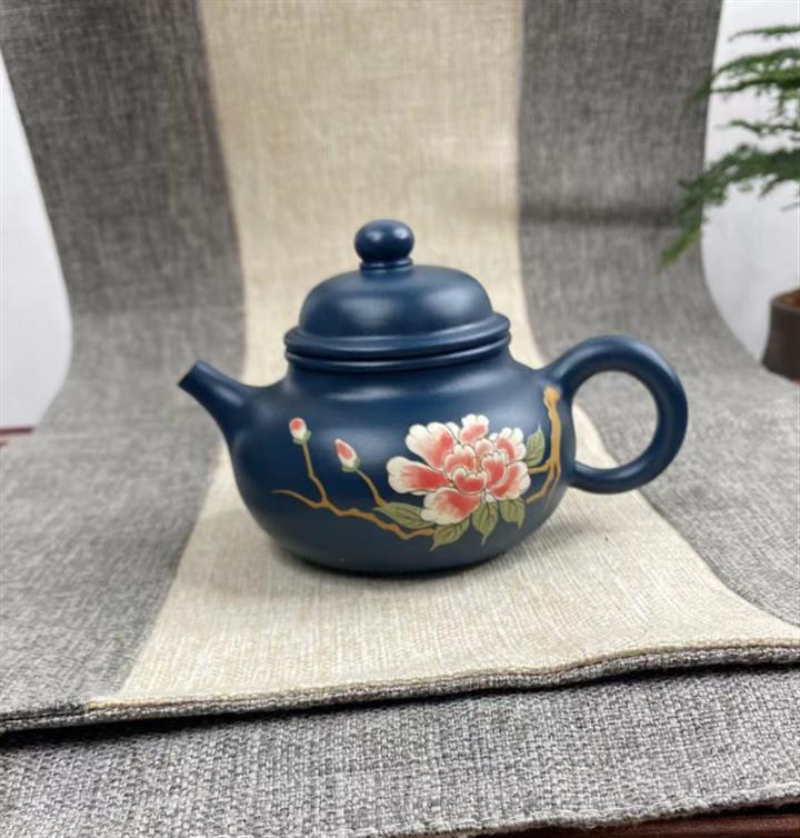 原礦黃段泥繪松果紫砂手工禮品茶壺茶具POT3972