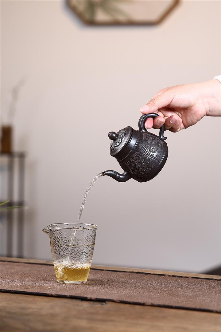 宮燈紫砂壺原礦黑金剛匠心手製茶壺茶具POT3997