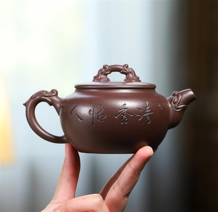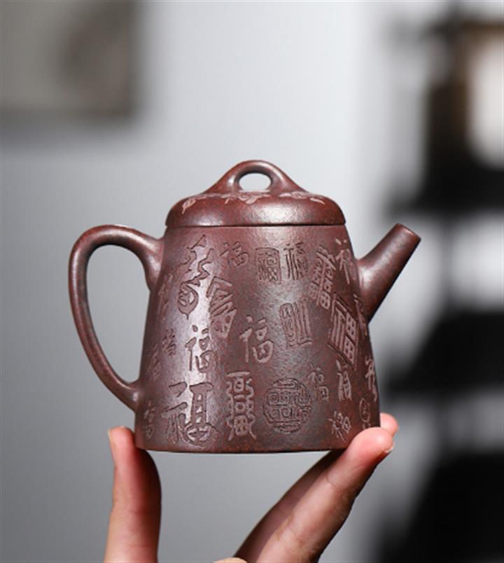 手工紫砂壺稀缺鐵紅龍血砂軟化水質百福秦權功夫茶POT3978