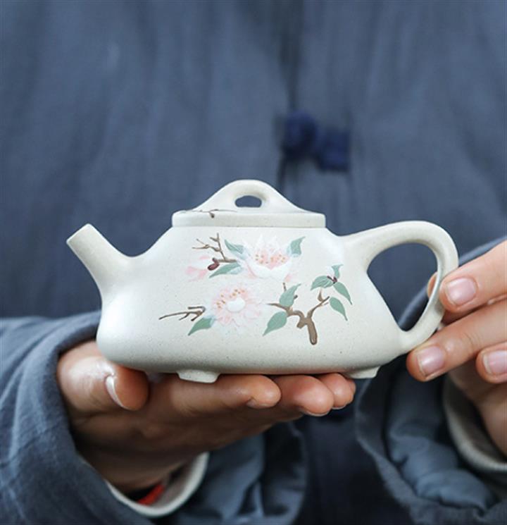 原礦黃段泥繪松果紫砂手工禮品茶壺茶具POT3972