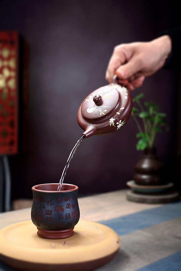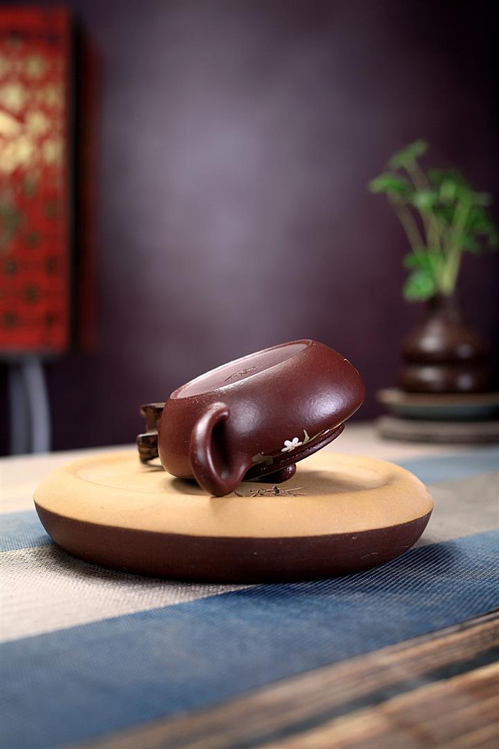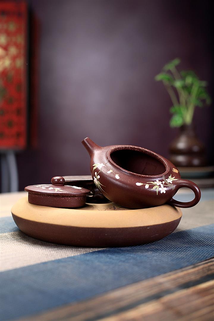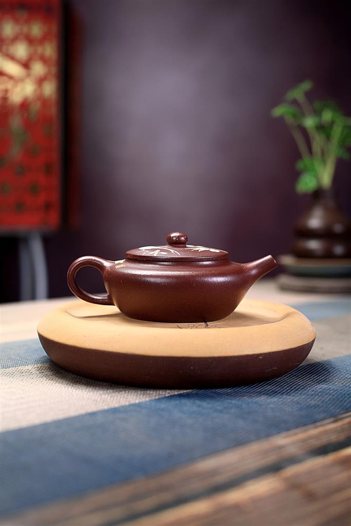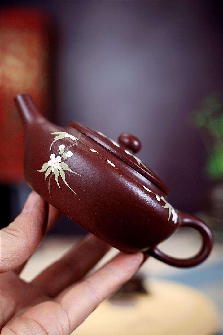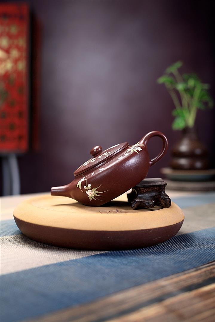 紫砂壺茶壺茶具原礦紫泥手工泥繪喜上眉梢扁晨POT3973