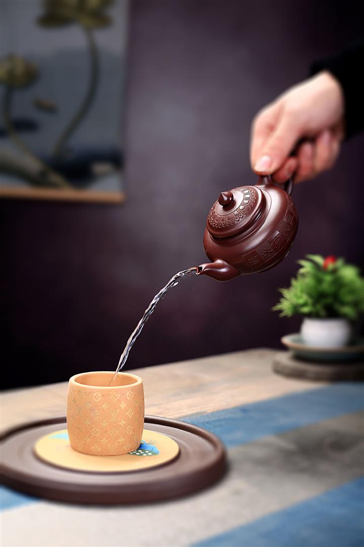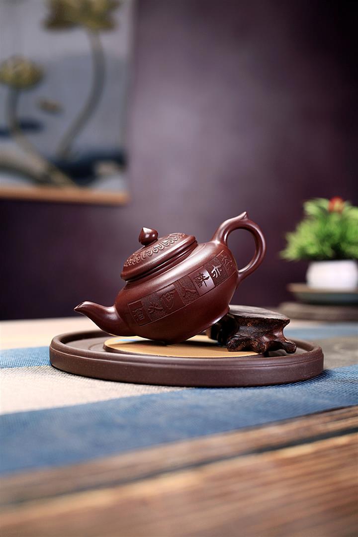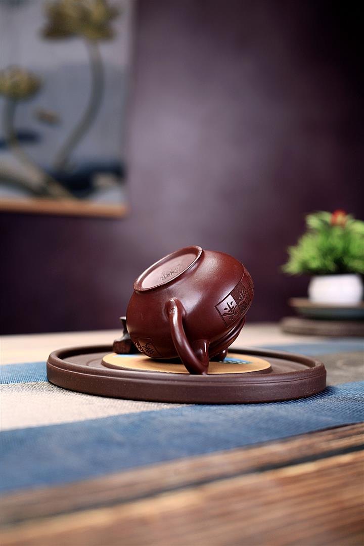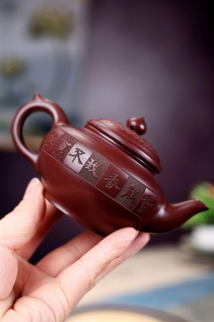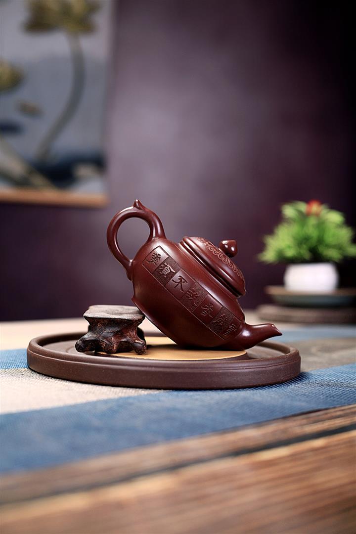 手工紫砂壺稀缺鐵紅龍血砂軟化水質百福秦權功夫茶POT3978