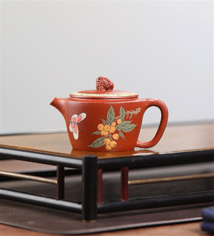 小品玲瓏原礦朱泥手繪雕塑紫砂壺POT3983