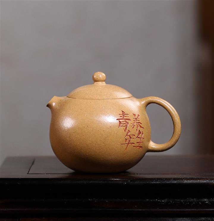 手工原礦段泥趣味刻繪養生青年河豚西施壺POT3984