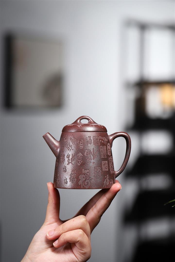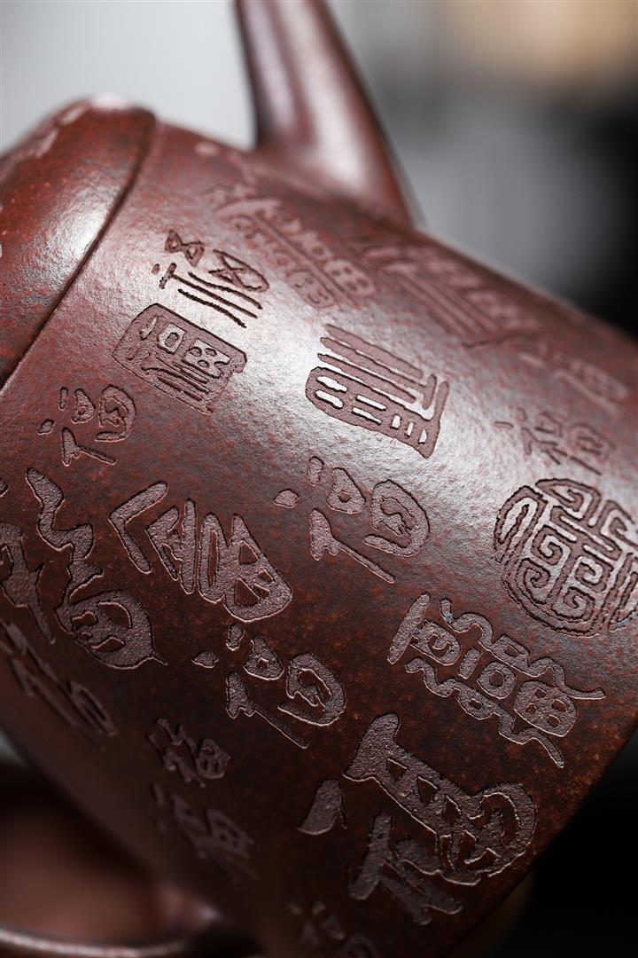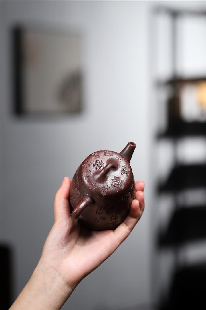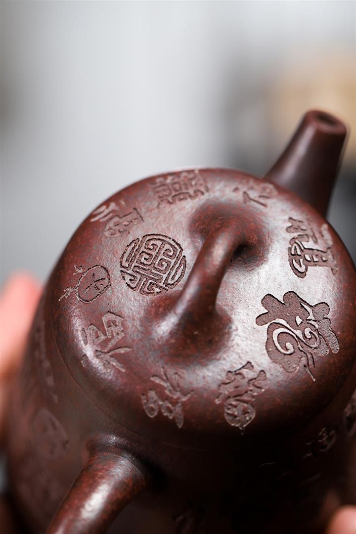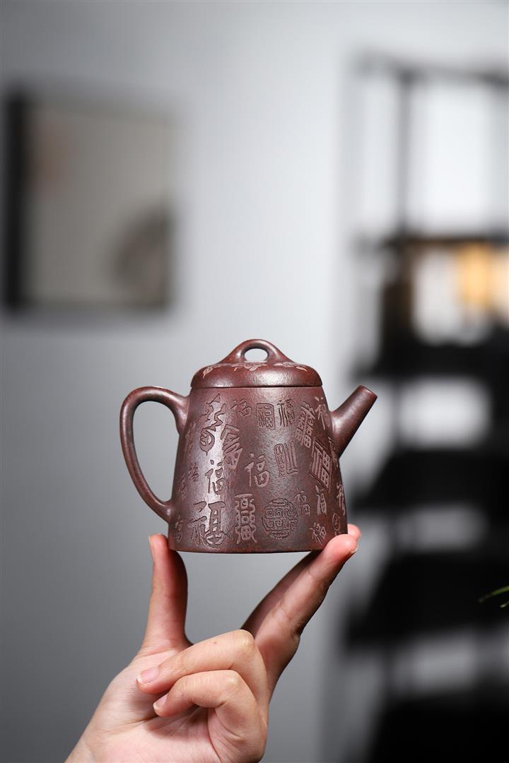 手工紫砂壺稀缺鐵紅龍血砂軟化水質百福秦權功夫茶POT3978