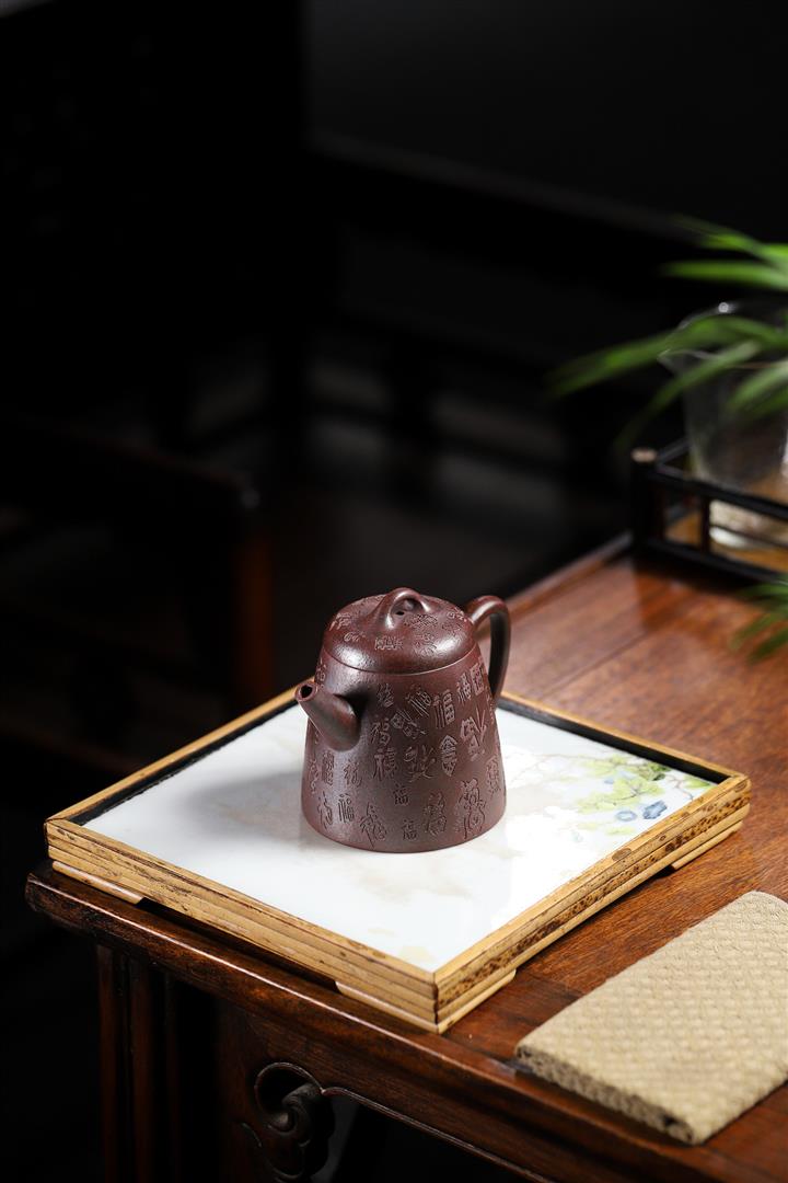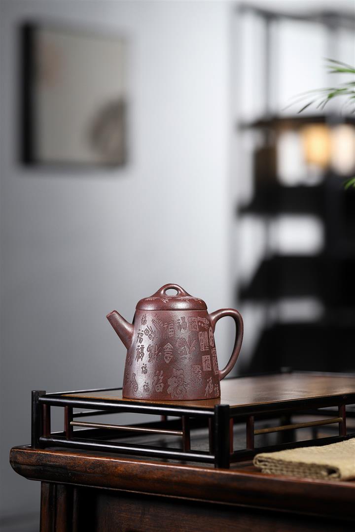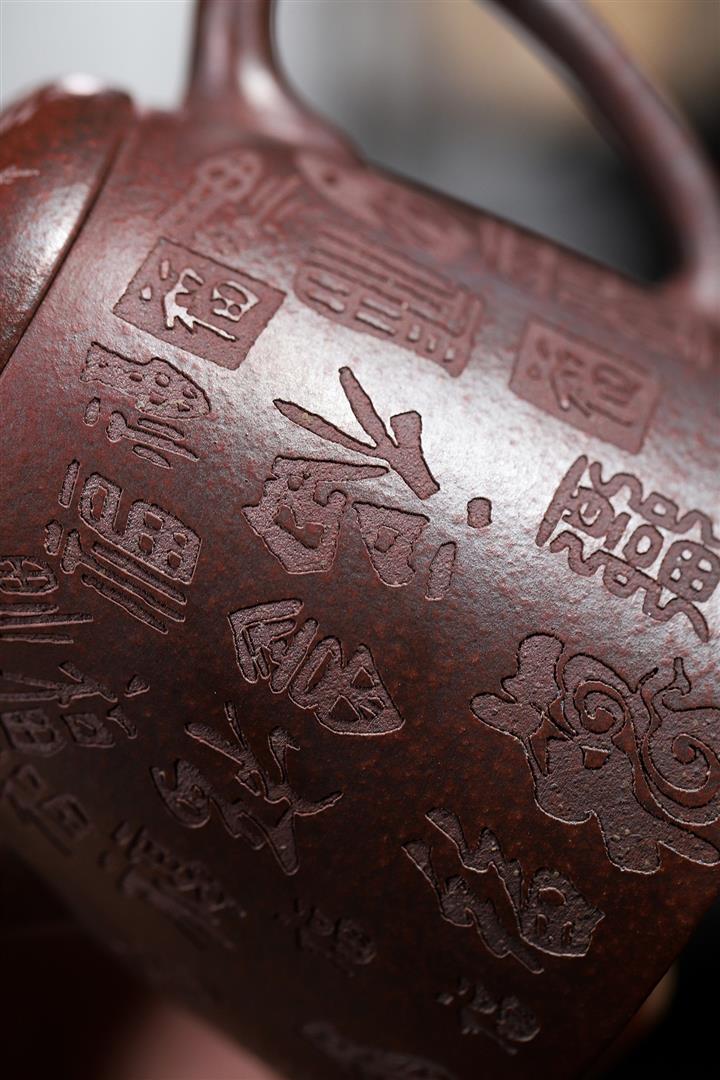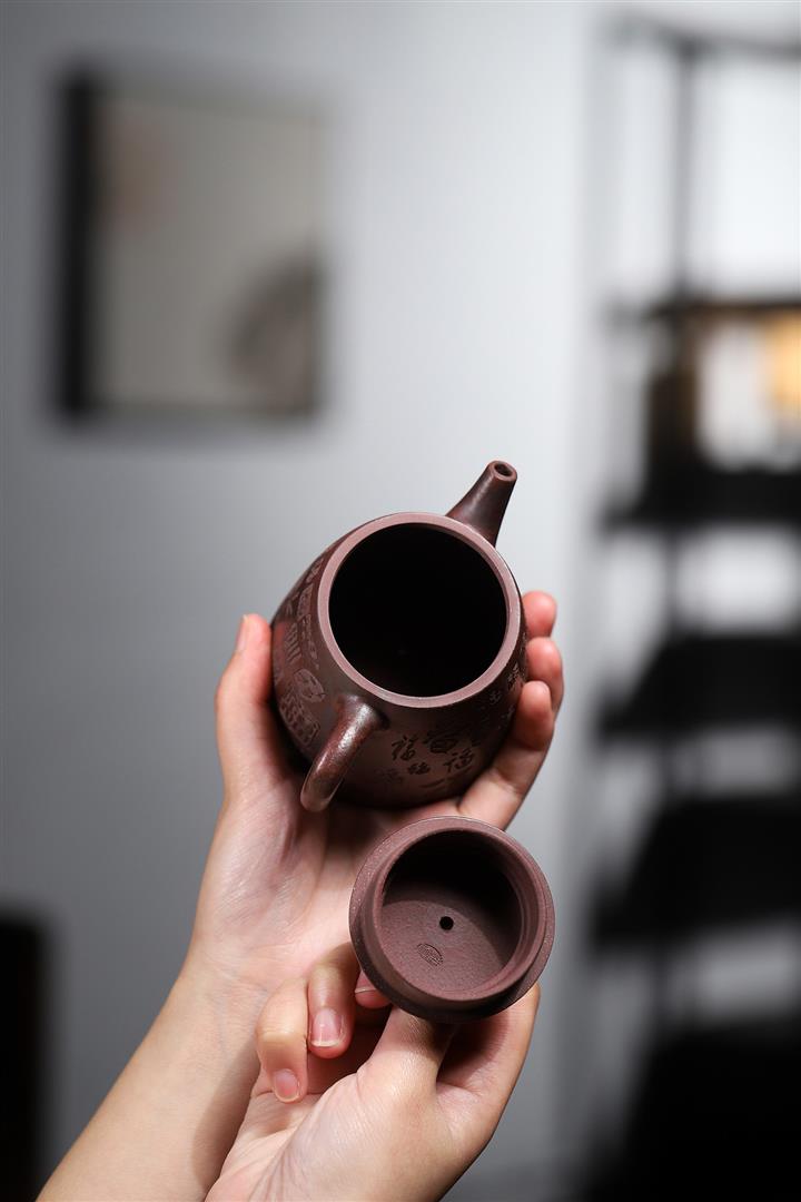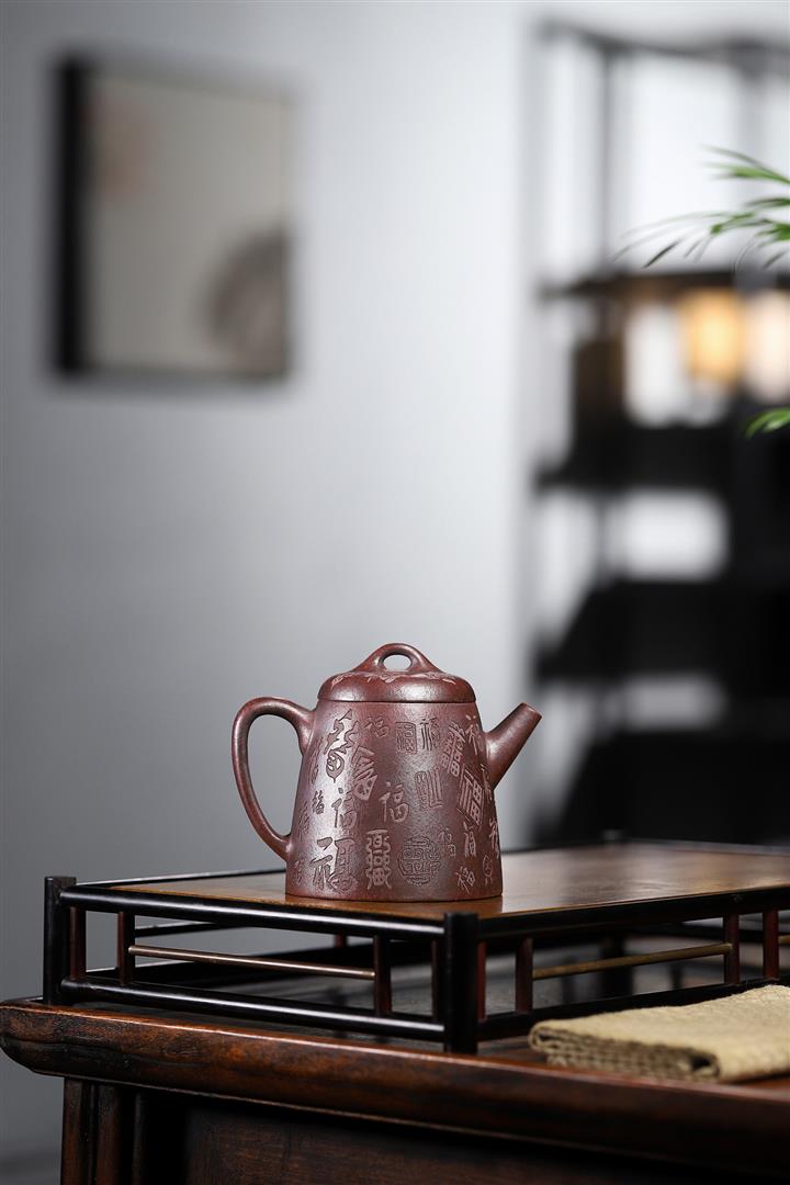 手工紫砂壺稀缺鐵紅龍血砂軟化水質百福秦權功夫茶POT3978