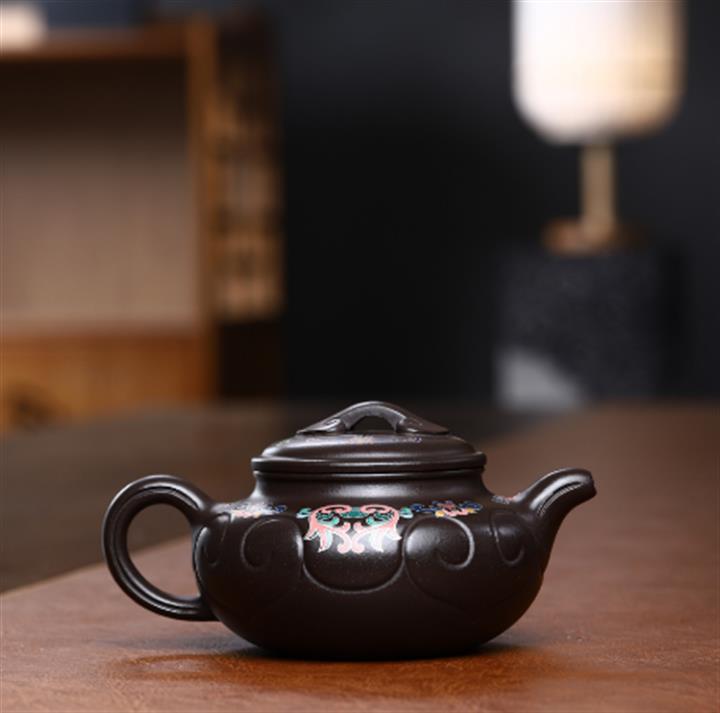 勛陶紫砂手工原礦老紫泥仿古如意壺POT3986