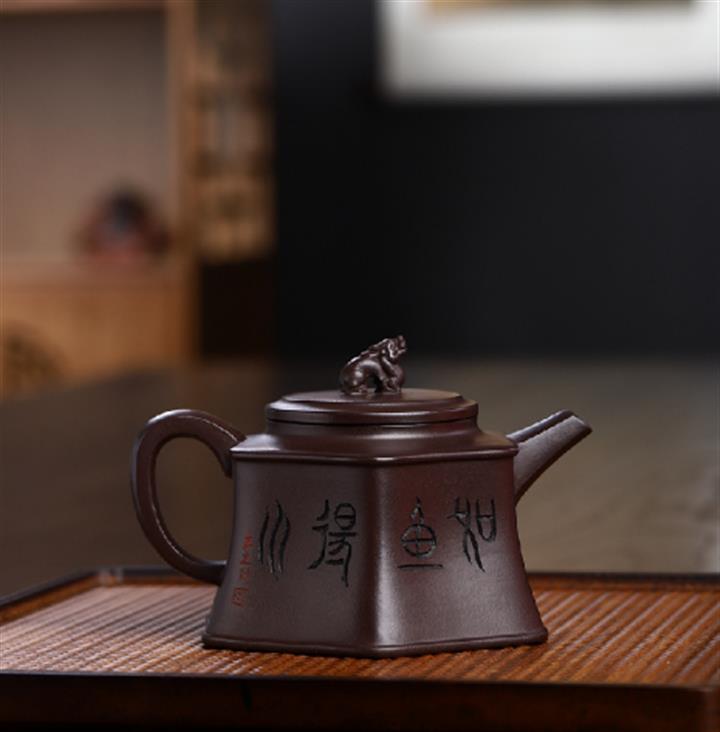 勛陶紫砂手工原礦低槽清六方仿古壺POT3988