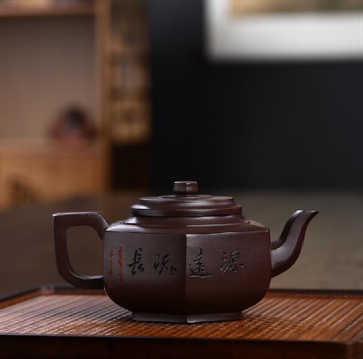 手工紫砂壺原礦老紫泥六方雪華茶壺POT3990
