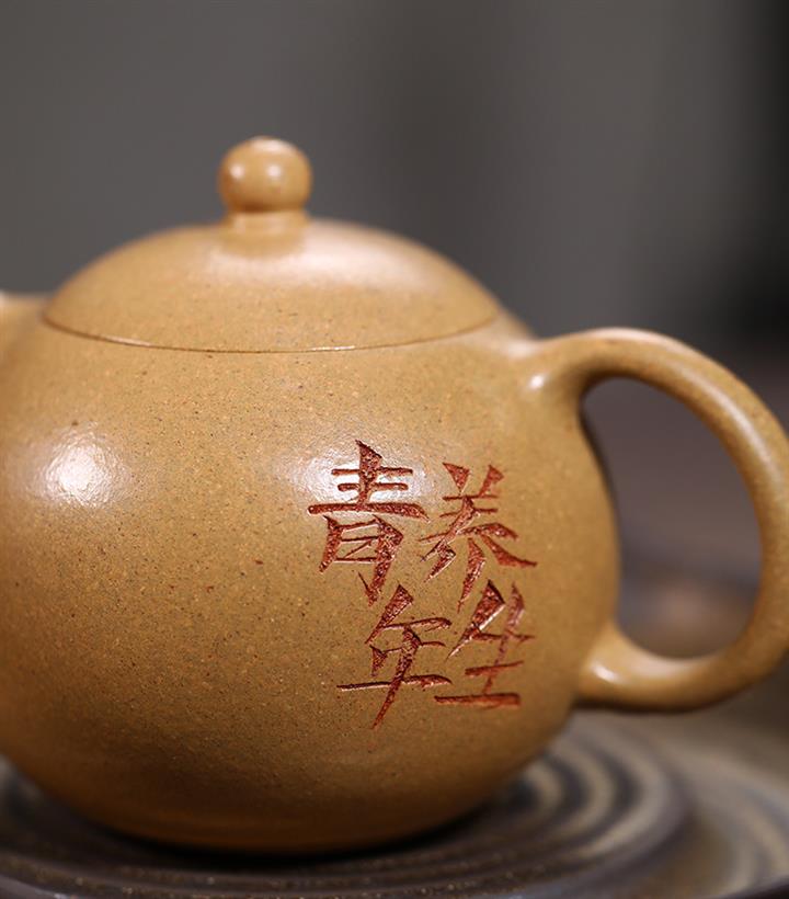 手工原礦段泥趣味刻繪養生青年河豚西施壺POT3984