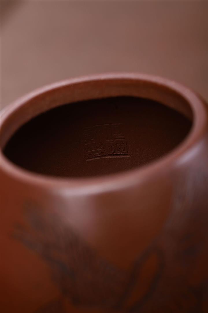 柿圓原礦豆沙青手工泥繪寬口紫砂壺POT3996