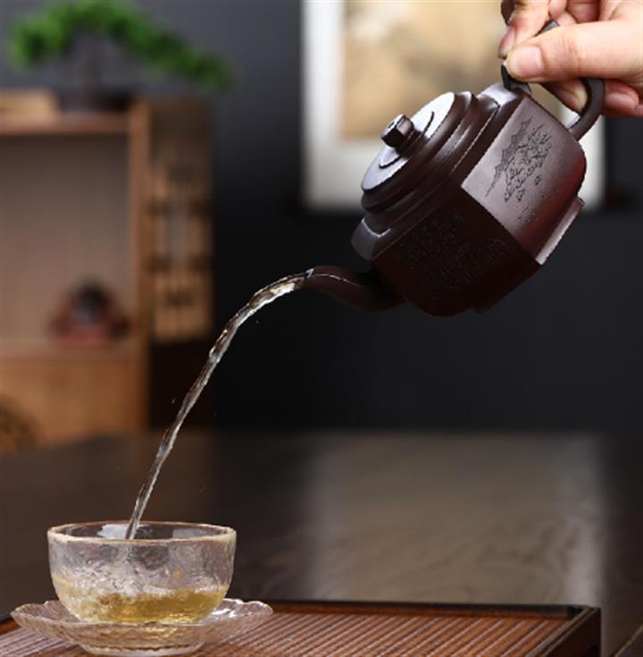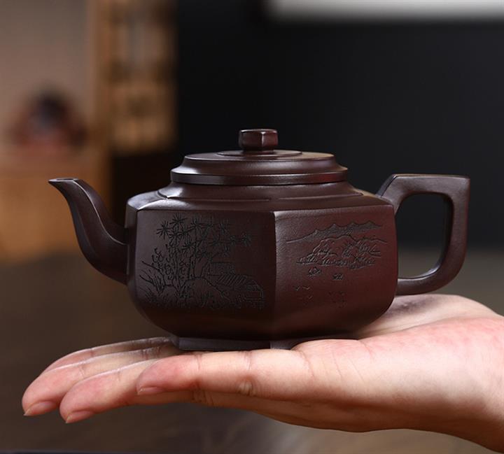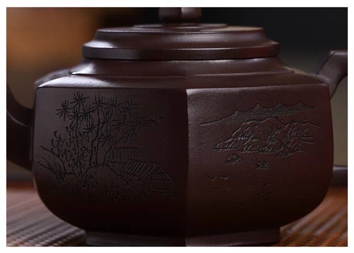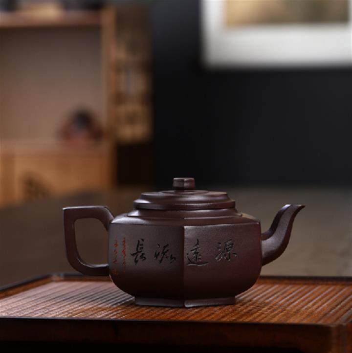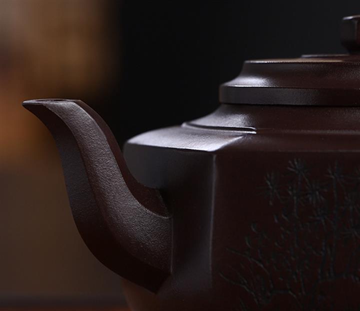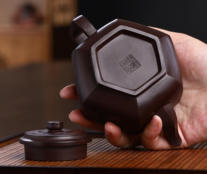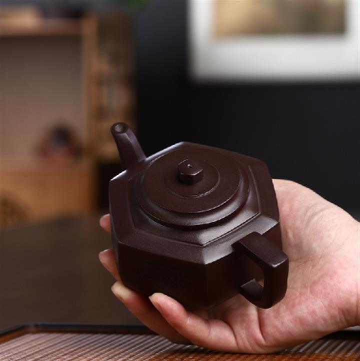 手工紫砂壺原礦老紫泥六方雪華茶壺POT3990