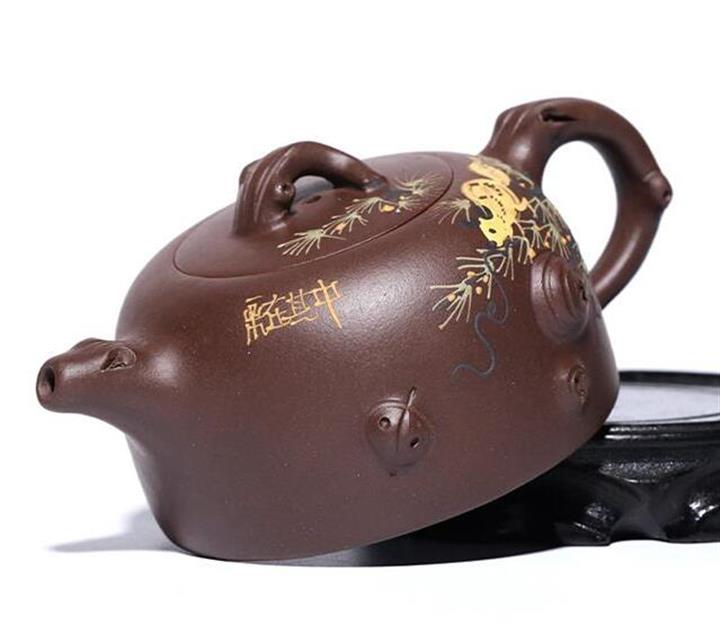 原礦高溫老紫泥六方龍紋秦權壺POT3991