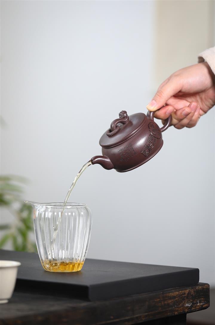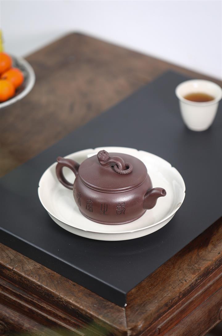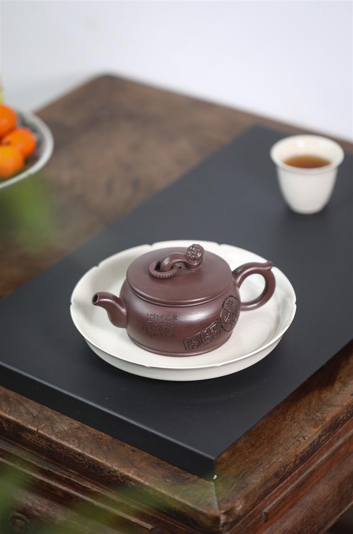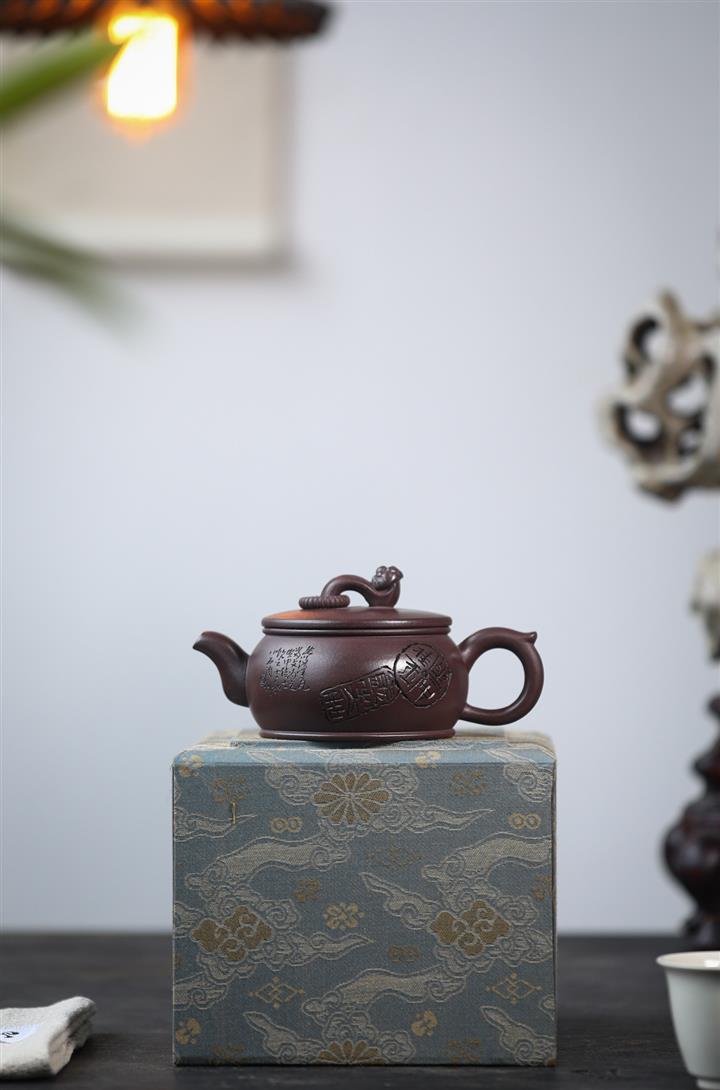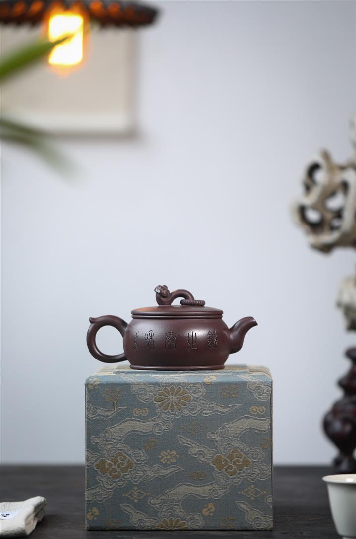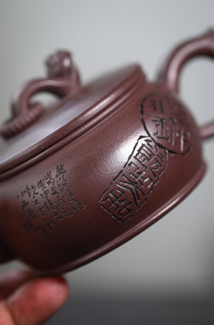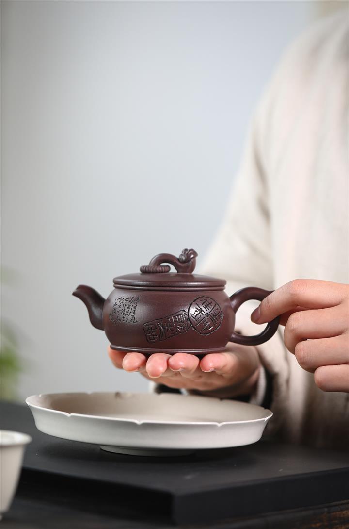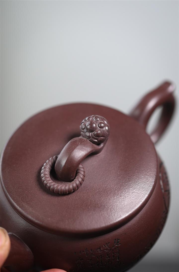 紫砂壺稀有龍血砂石瓢壺純手工刻繪POT3922