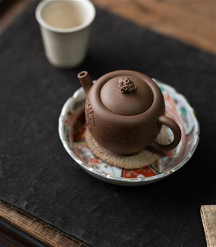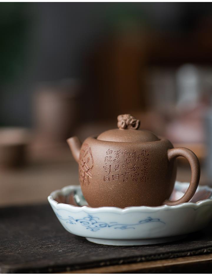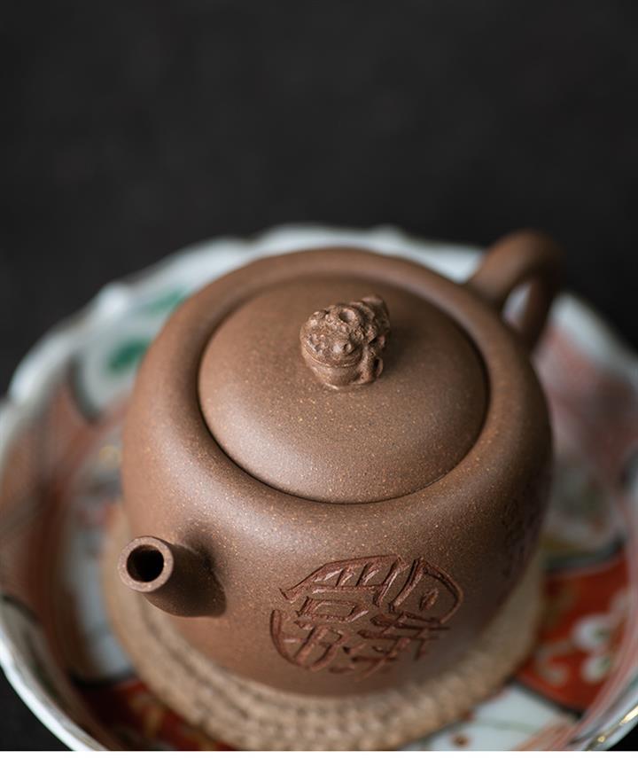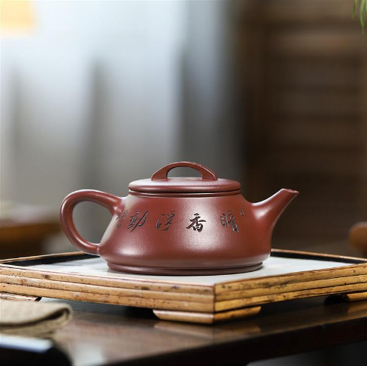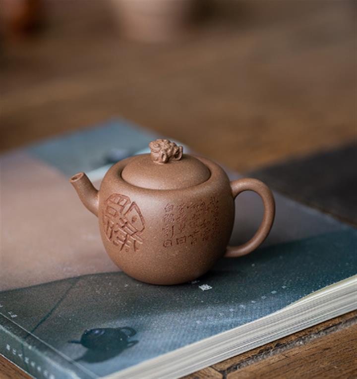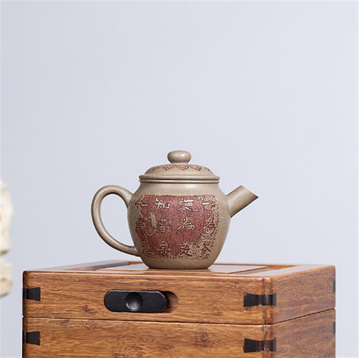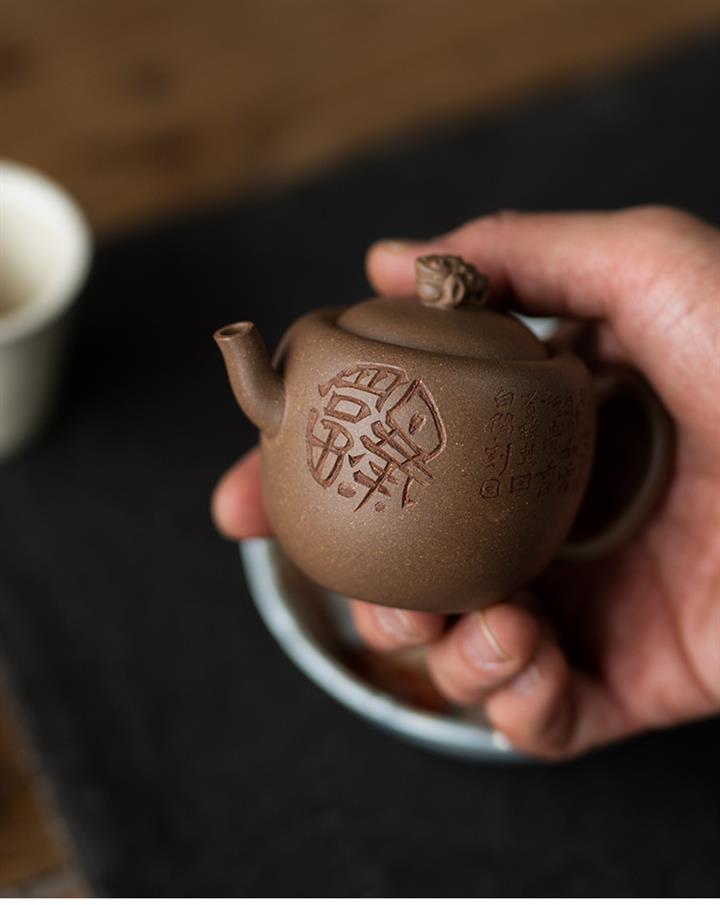 紫砂壺稀有龍血砂石瓢壺純手工刻繪POT3922