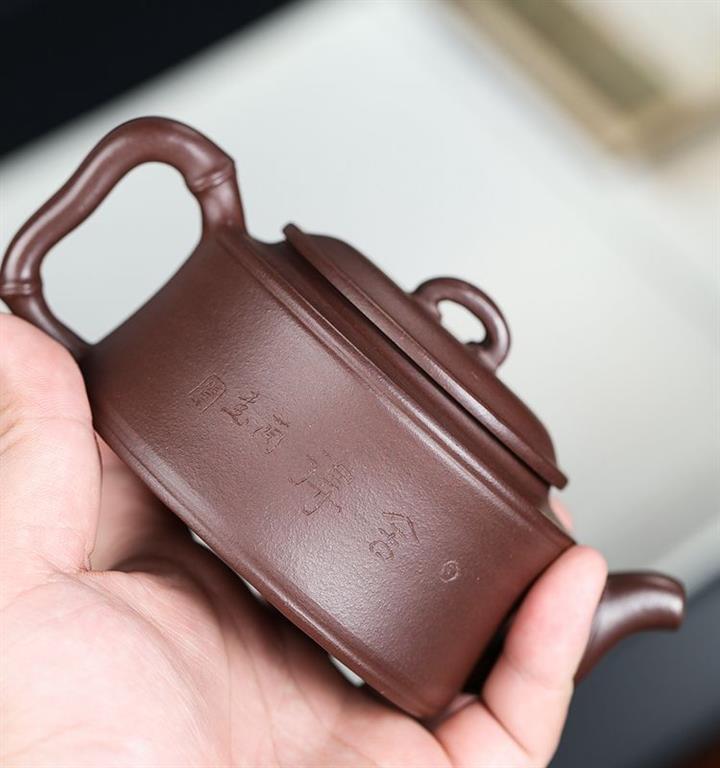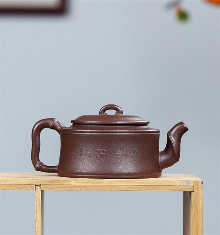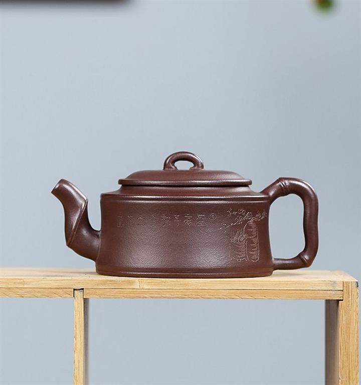 手工製原礦紫泥刻繪竹韻壺POT3929