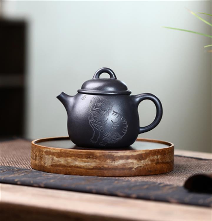 金鐘原礦龍背青手工刻字紫砂壺POT3933