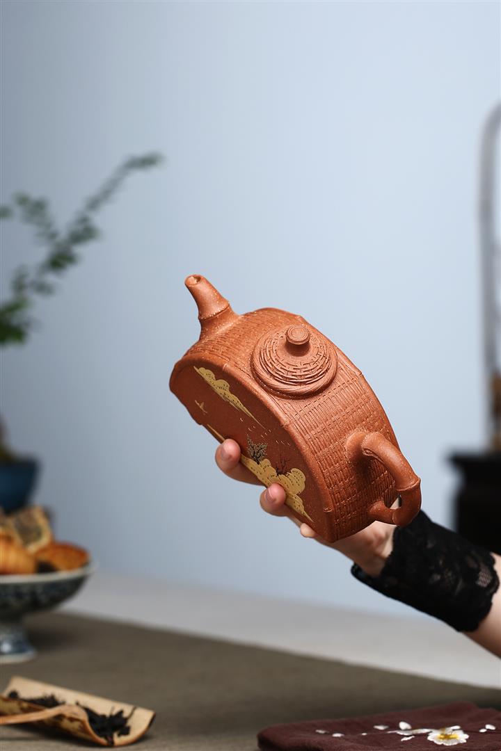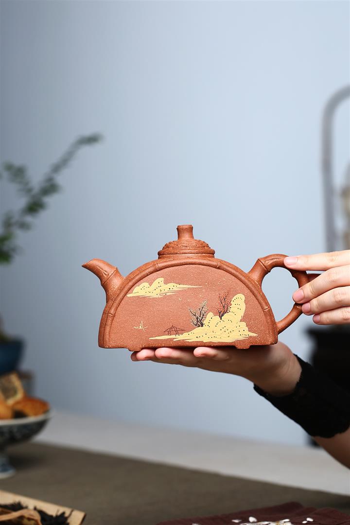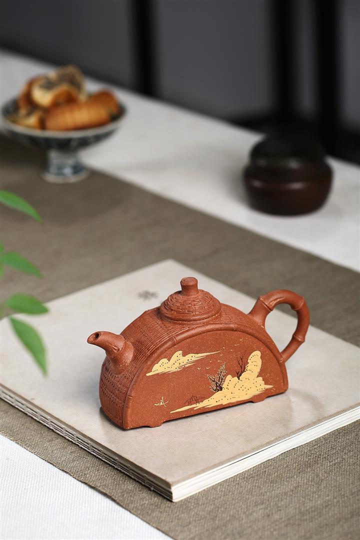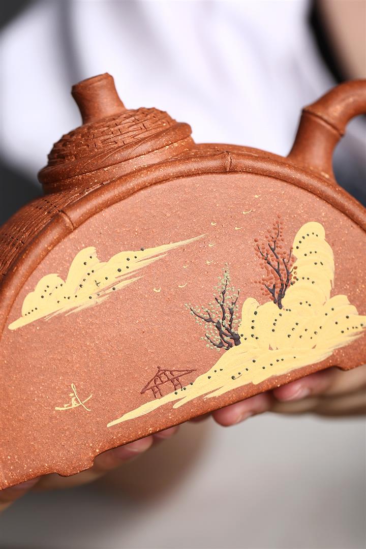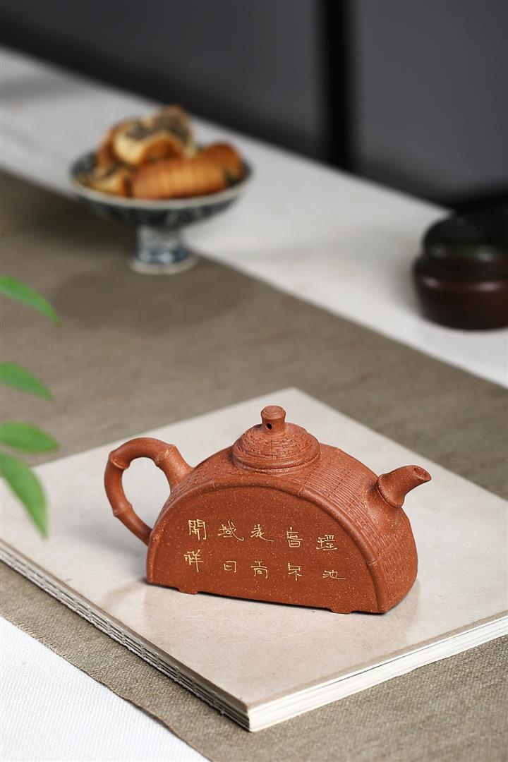半月紫砂壺手工泥繪仿竹編茶具POT3932