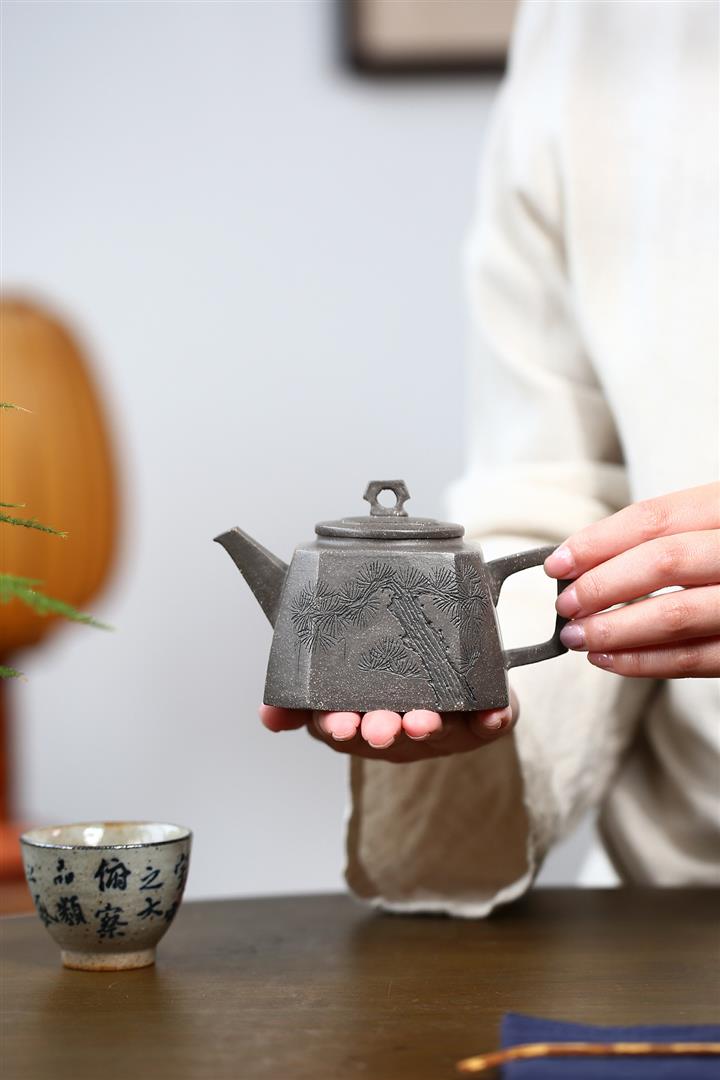 金鐘原礦龍背青手工刻字紫砂壺POT3933