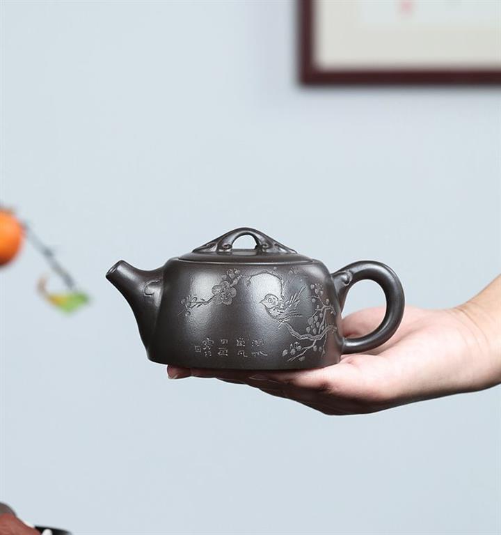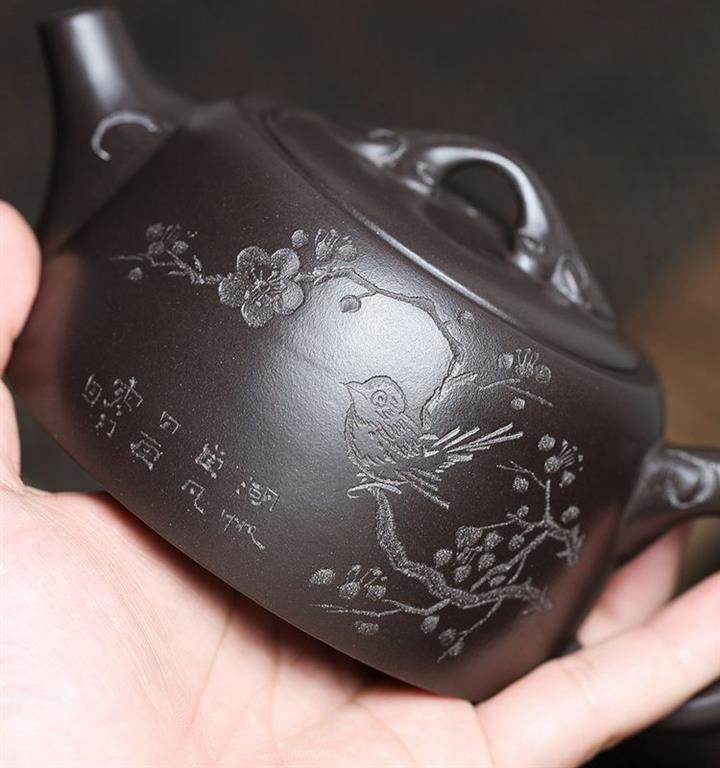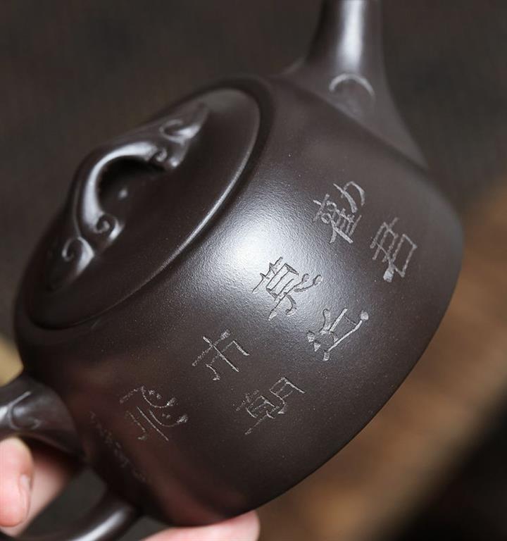 紫砂壺高石瓢刻繪半手工茶壺POT4002