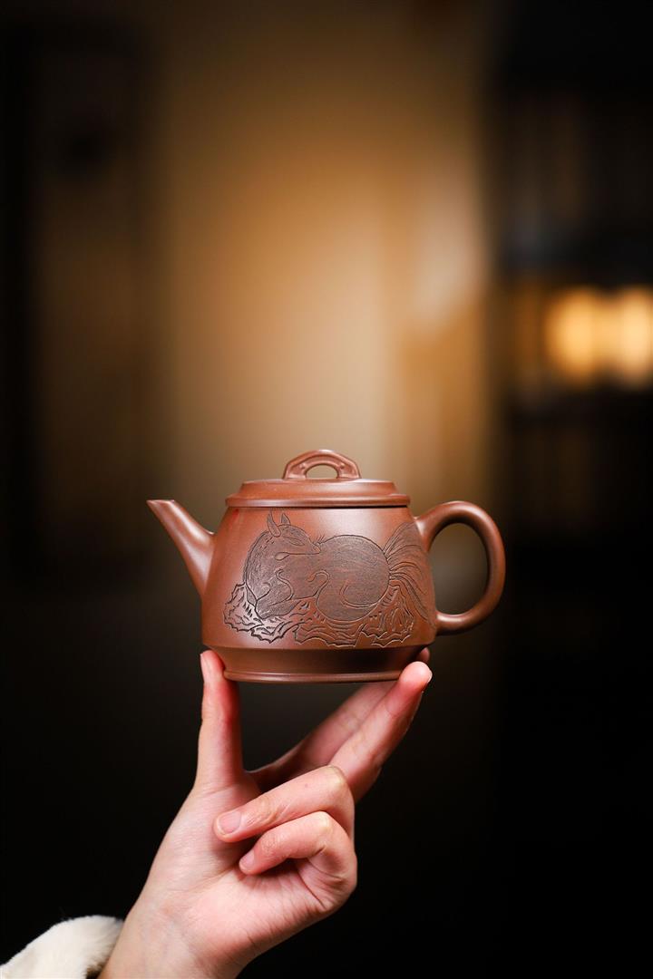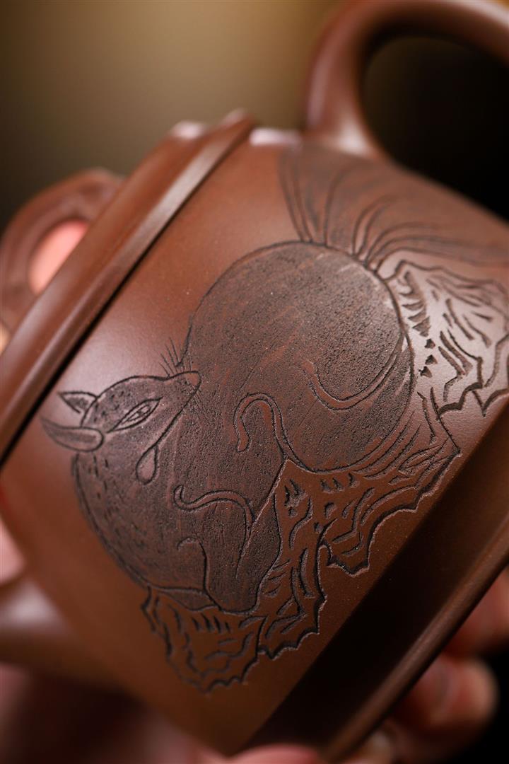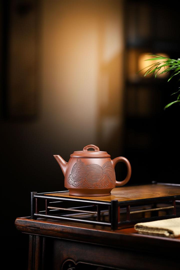 原礦紫砂壺龍尊貔貅純全手工刻繪紫泥泡茶壺POT4013