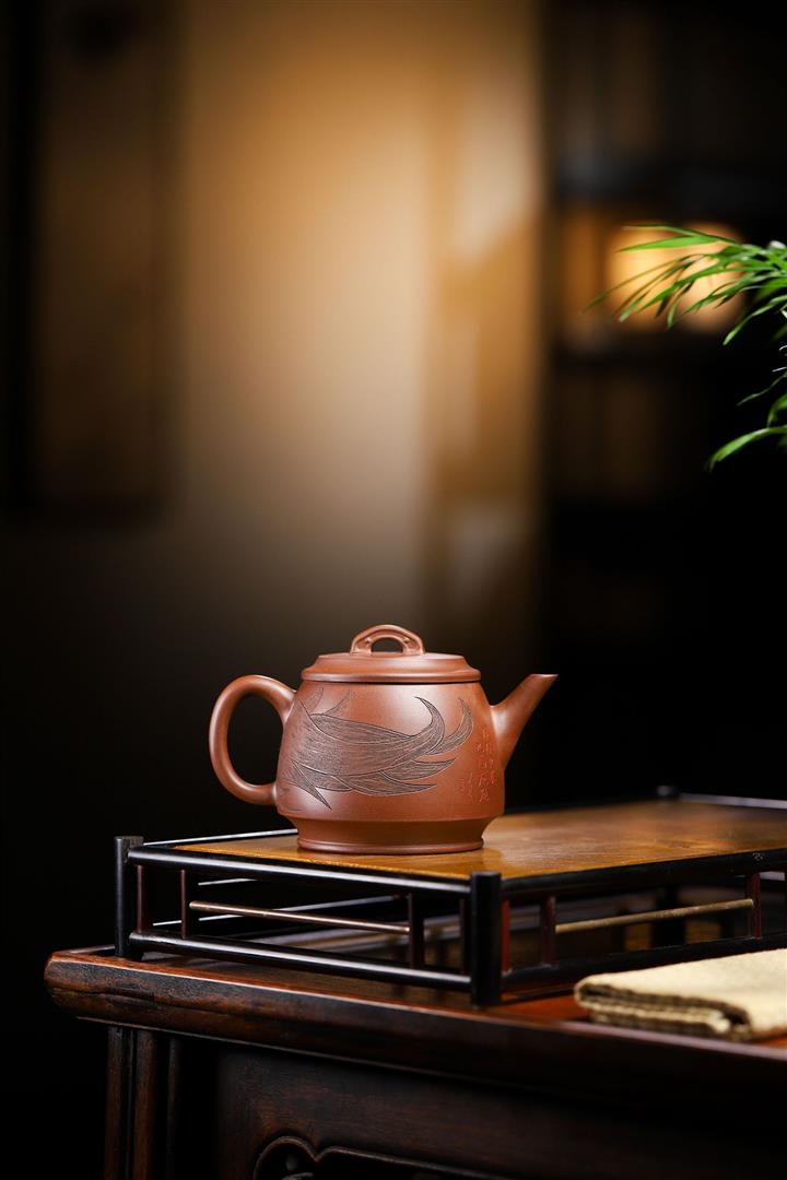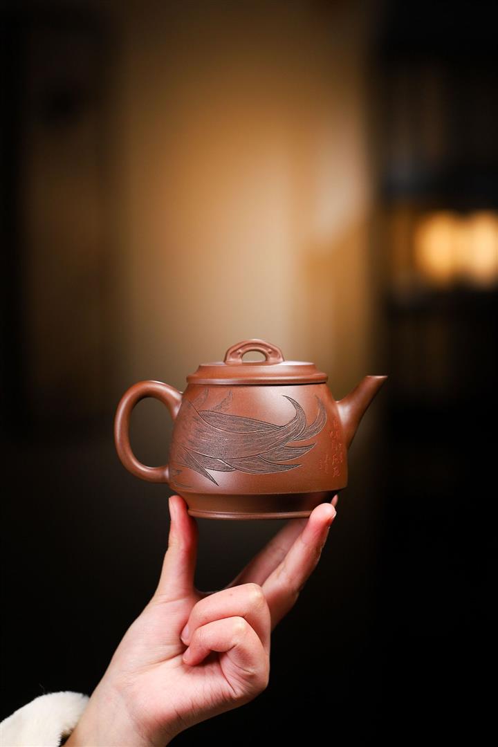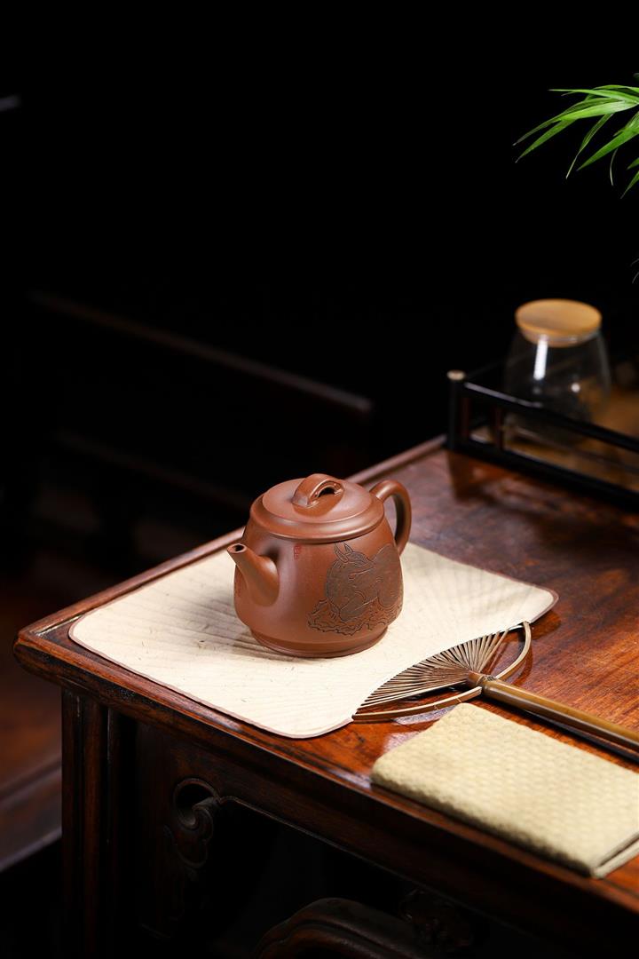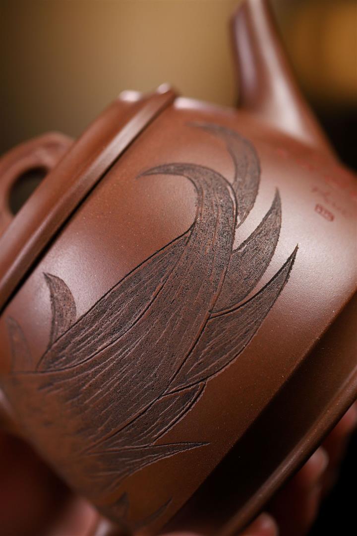 紫砂壺名家老紫泥刻繪周盤壺POT4009