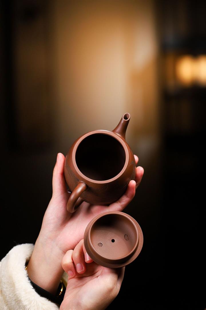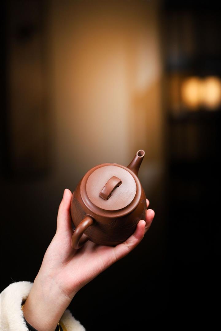 【泥料特點】砂土氣重,似淳實農民,日久使用,漸露鋒芒,養成變化甚大,溫潤莊重。線條優美自然,嘴把搭配協調,身桶配上細長的把搭配,更顯優雅高貴