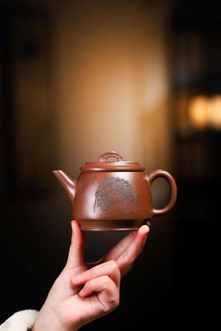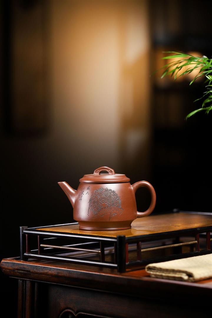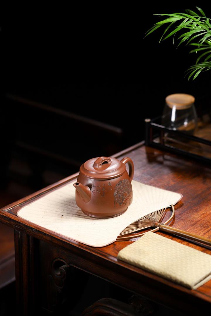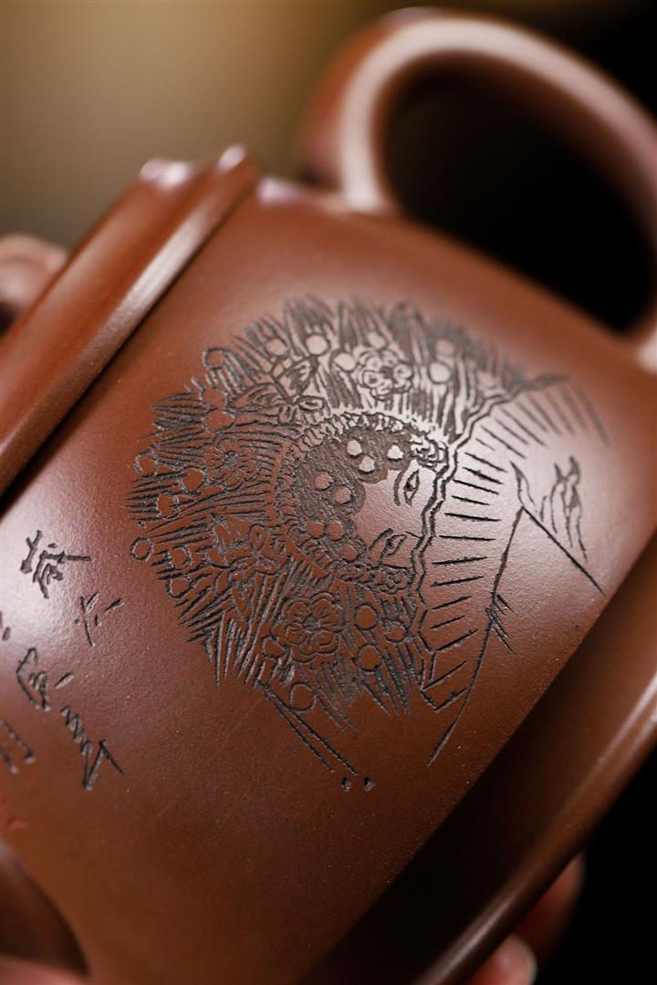 紫砂壺名家老紫泥刻繪周盤壺POT4009