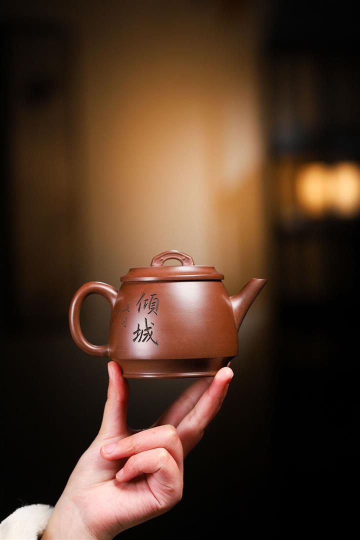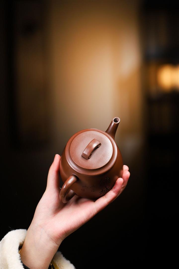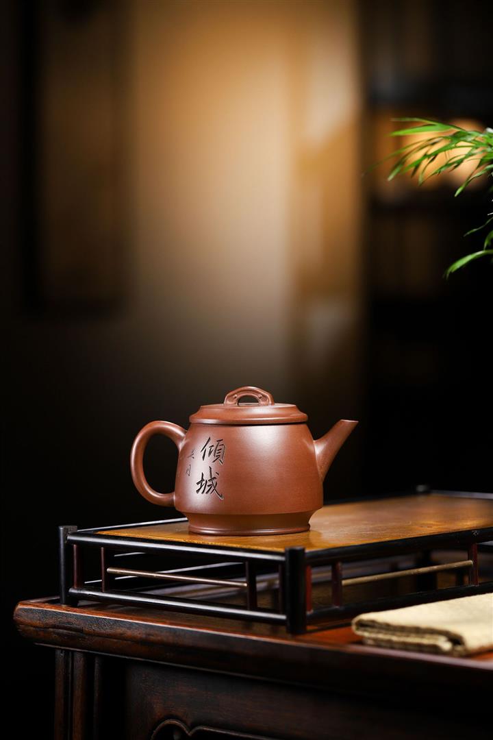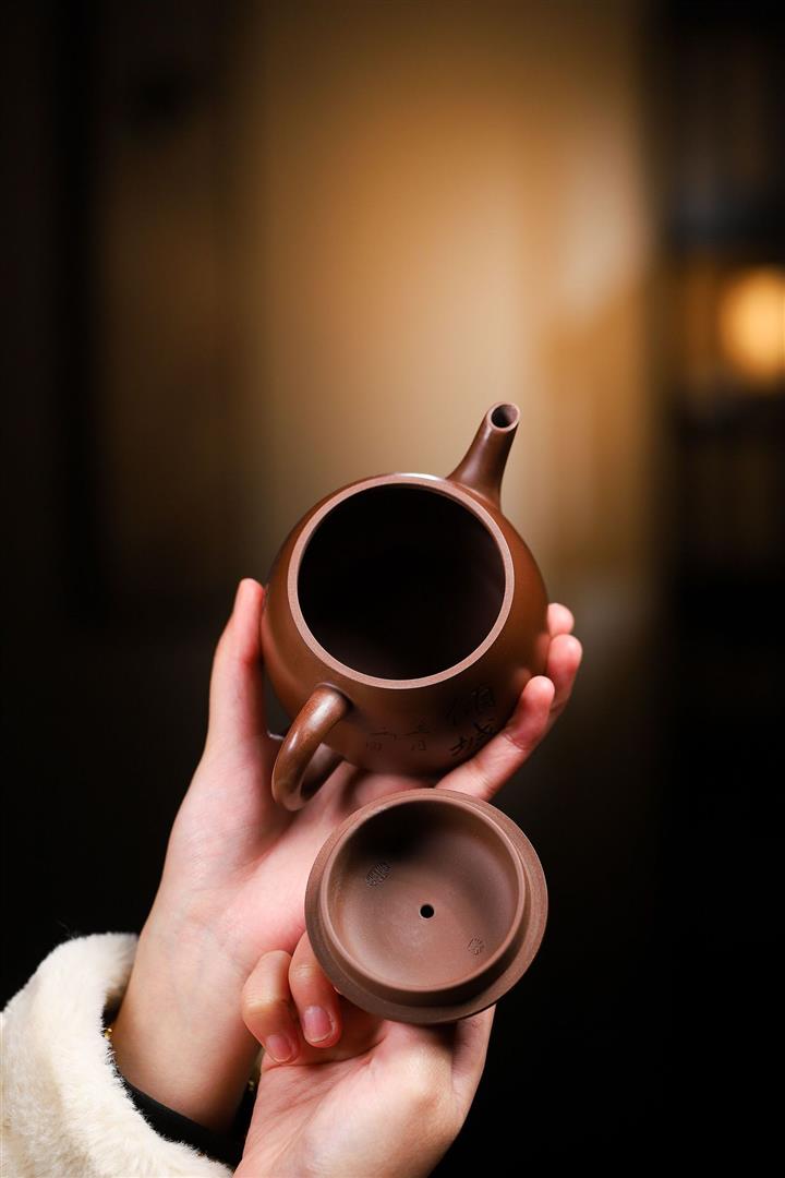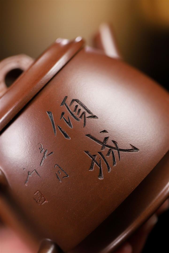 紫砂壺名家老紫泥刻繪周盤壺POT4009
