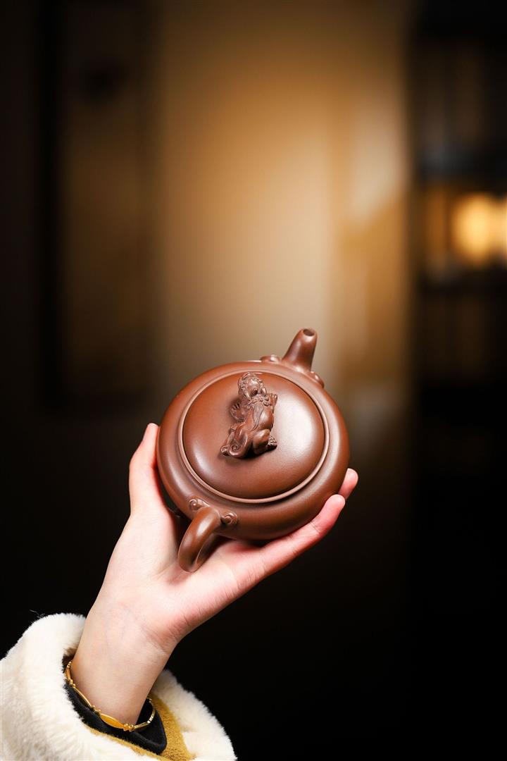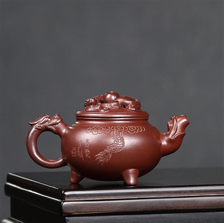 原礦紫砂壺龍尊貔貅純全手工刻繪紫泥泡茶壺POT4013