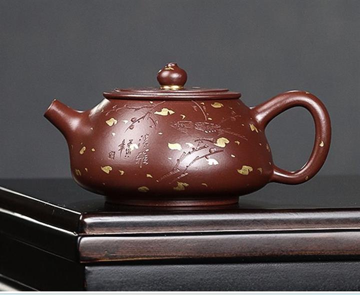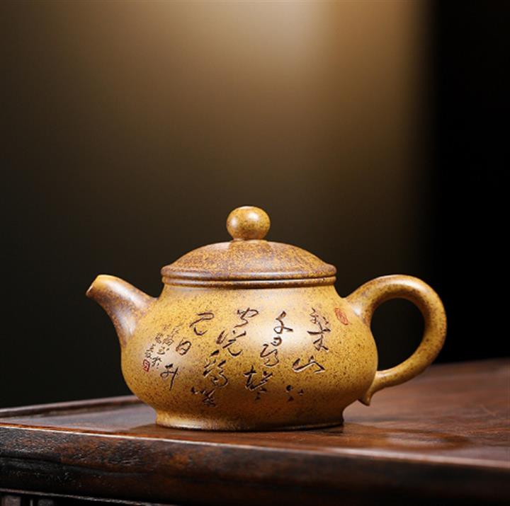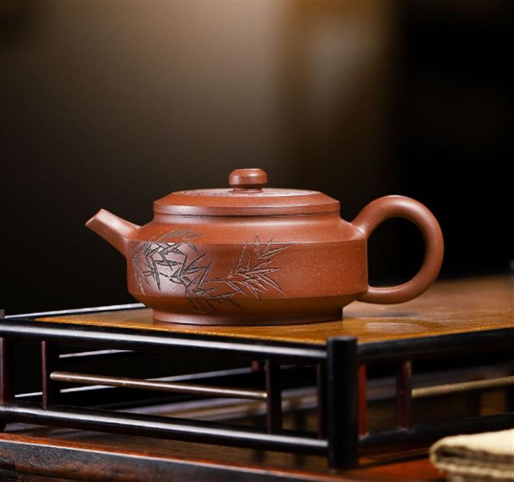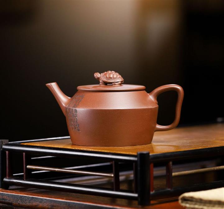 紫砂壺名家老紫泥刻繪周盤壺POT4009