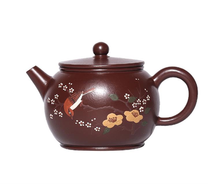 紫砂壺全純手工泥繪喜上眉梢泡茶壺原礦紫泥POT4012