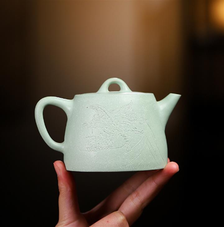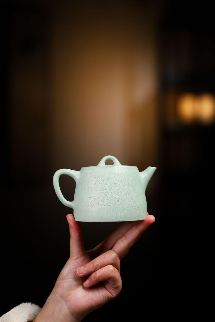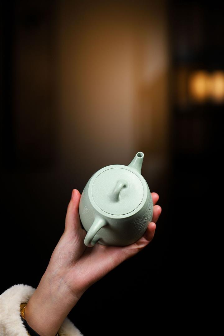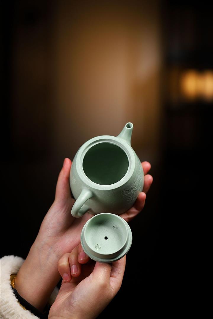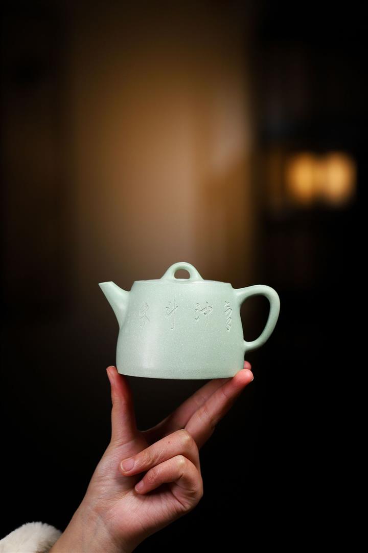 紫砂壺名家豆青泥高石瓢半手工茶壺POT4004