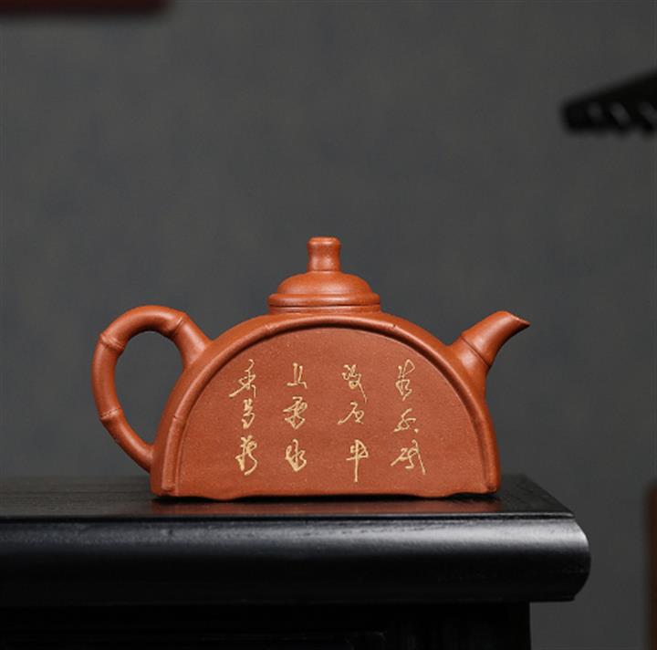 紫砂壺名家老紫泥刻繪周盤壺POT4009
