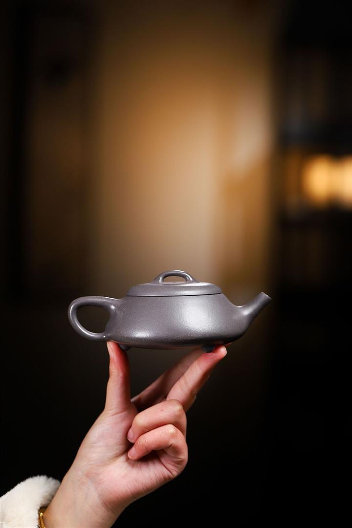 【泥料特點】砂土氣重,似淳實農民,日久使用,漸露鋒芒,養成變化甚大,溫潤莊重。線條優美自然,嘴把搭配協調,身桶配上細長的把搭配,更顯優雅高貴