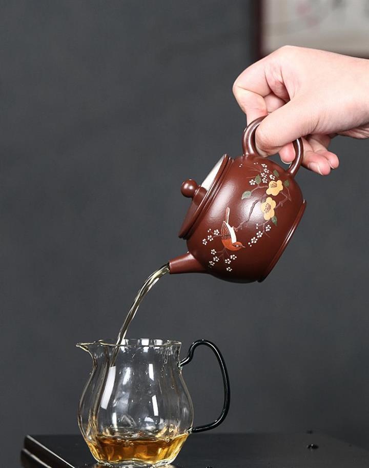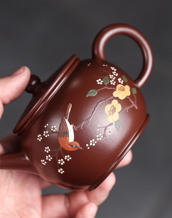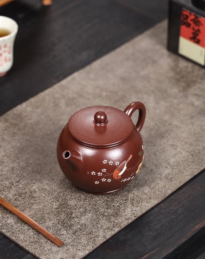 紫砂壺全純手工泥繪喜上眉梢泡茶壺原礦紫泥POT4012