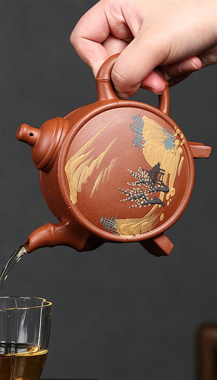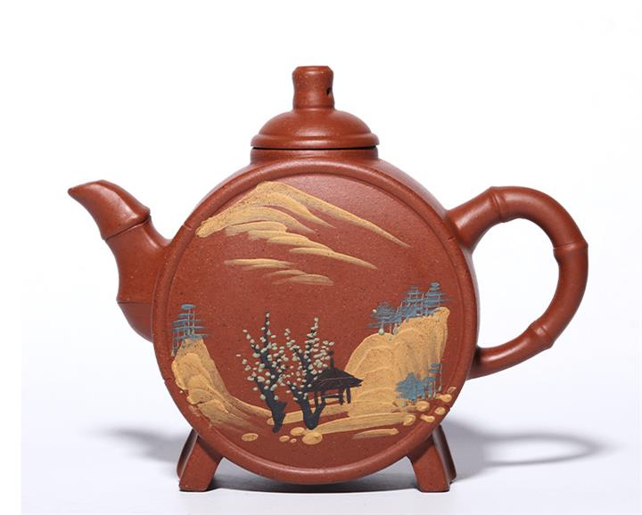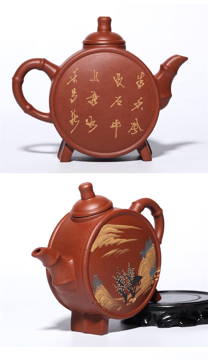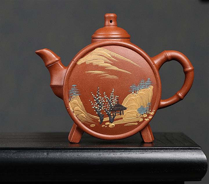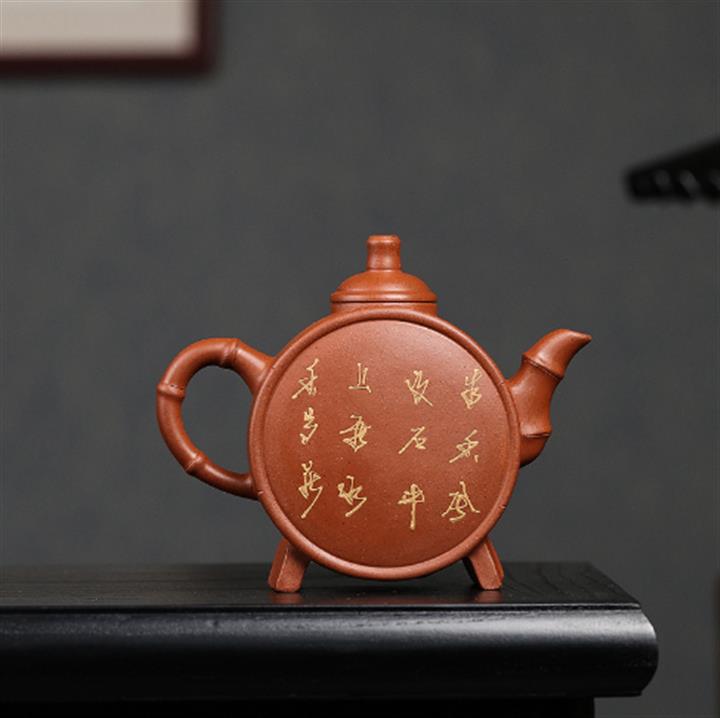 原礦石黃料手工刻繪無求紫砂壺 POT4022