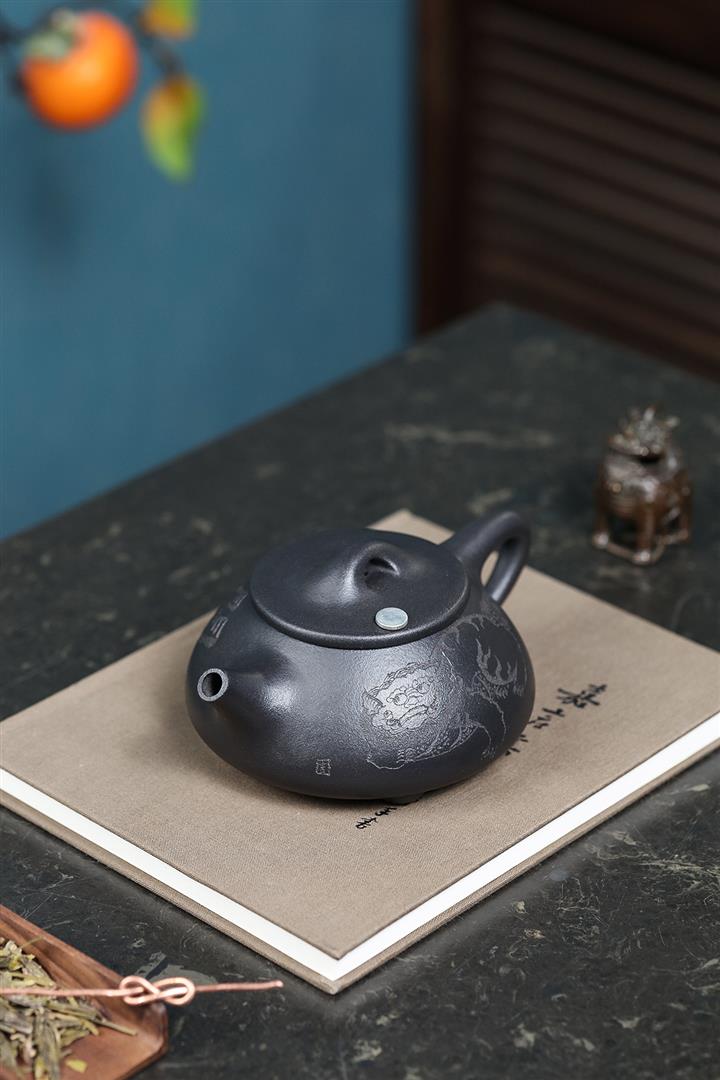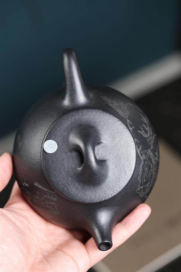 原礦石黃料手工刻繪無求紫砂壺 POT4022