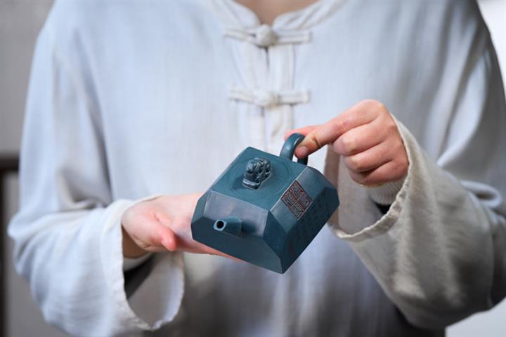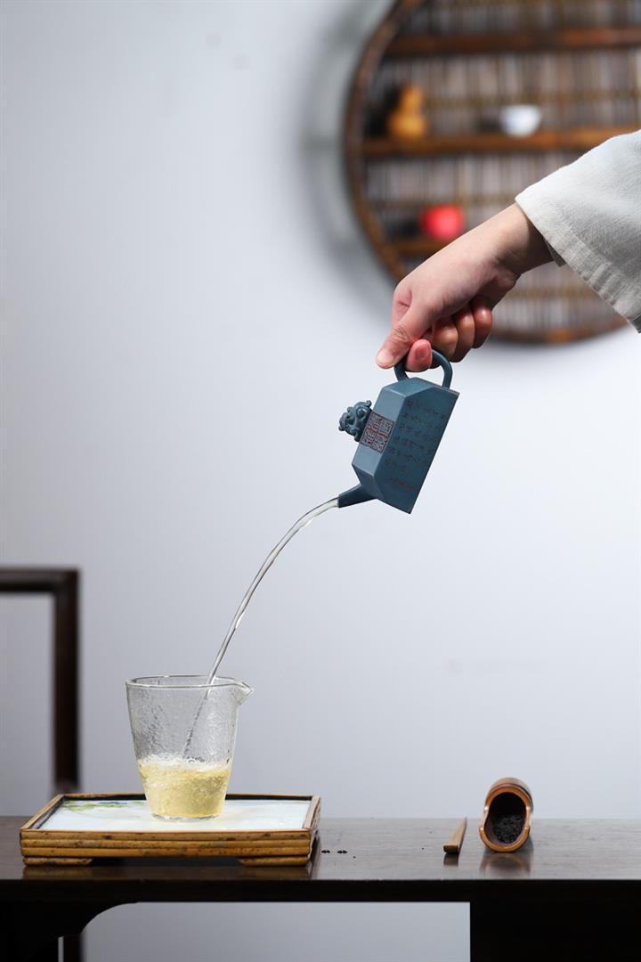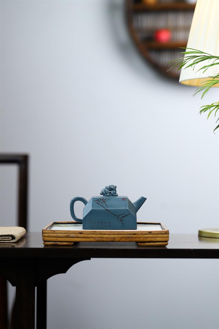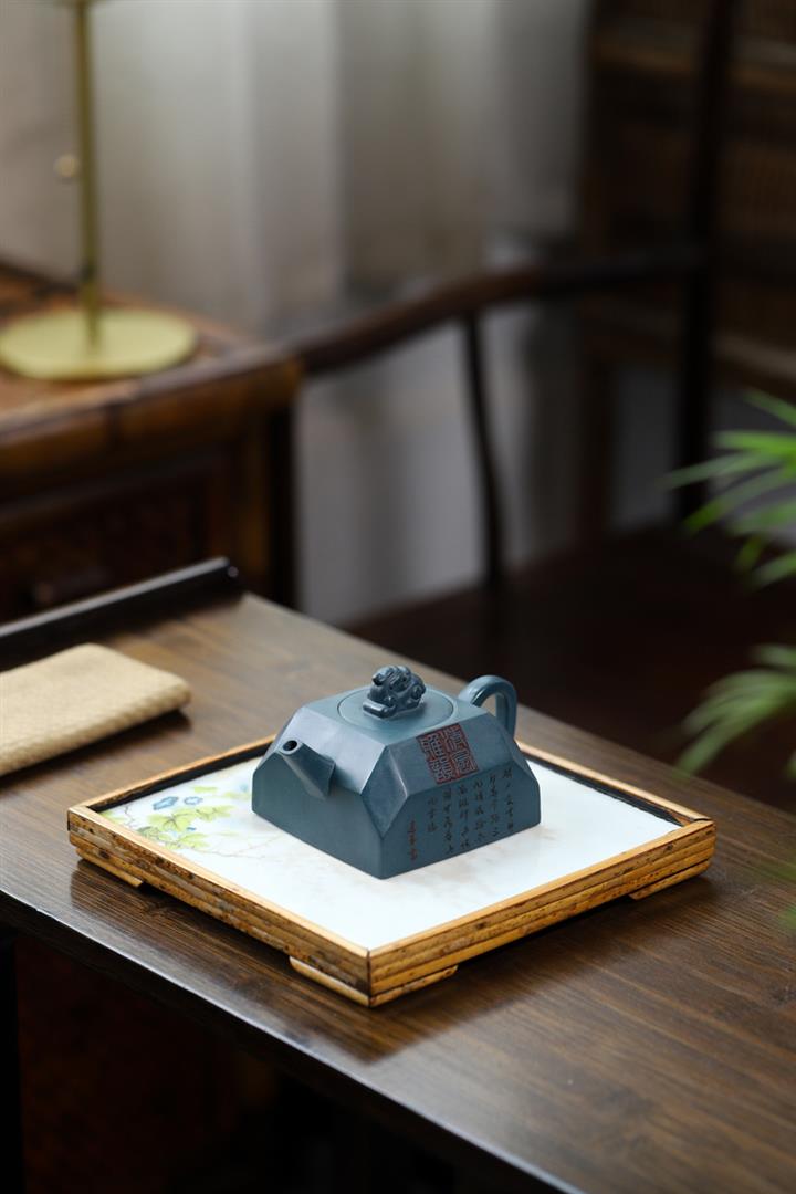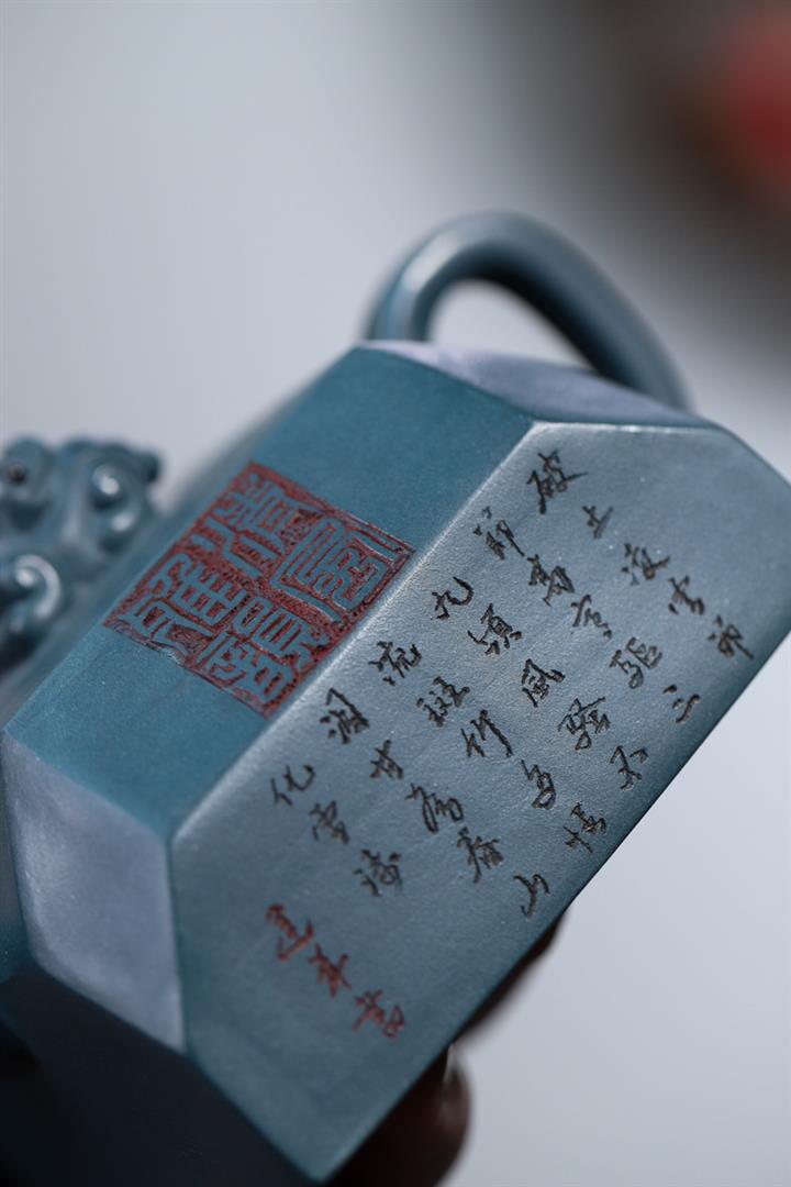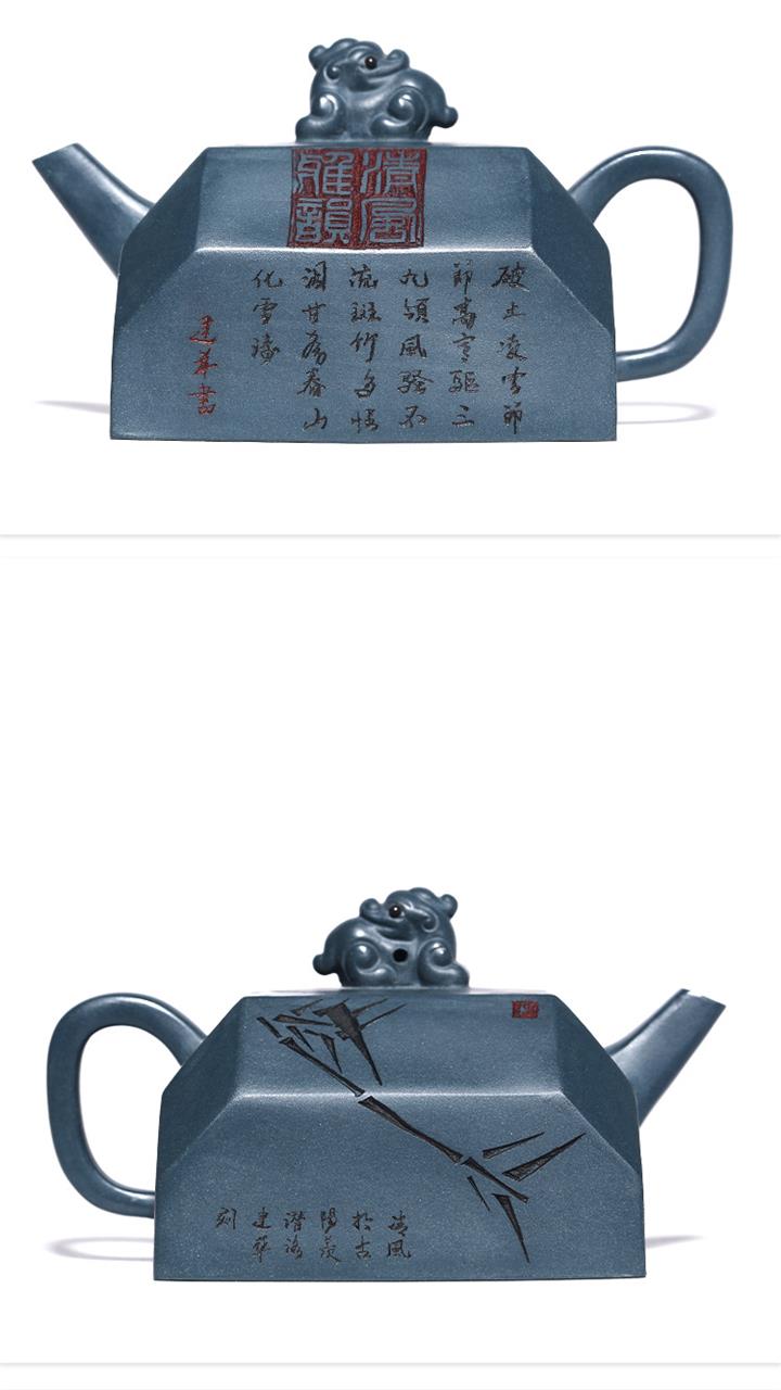 全手工天青泥紫砂壺四方吉獸茶壺POT4035