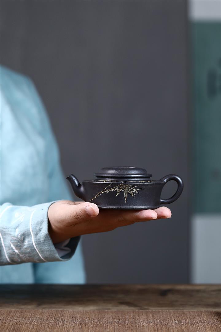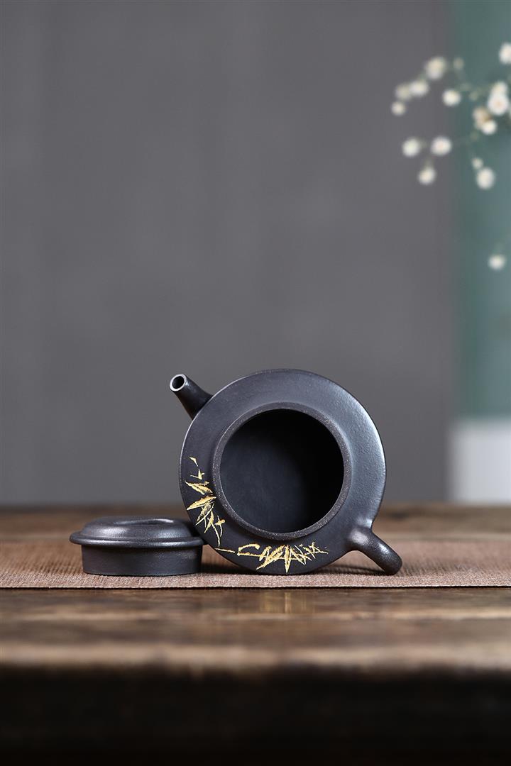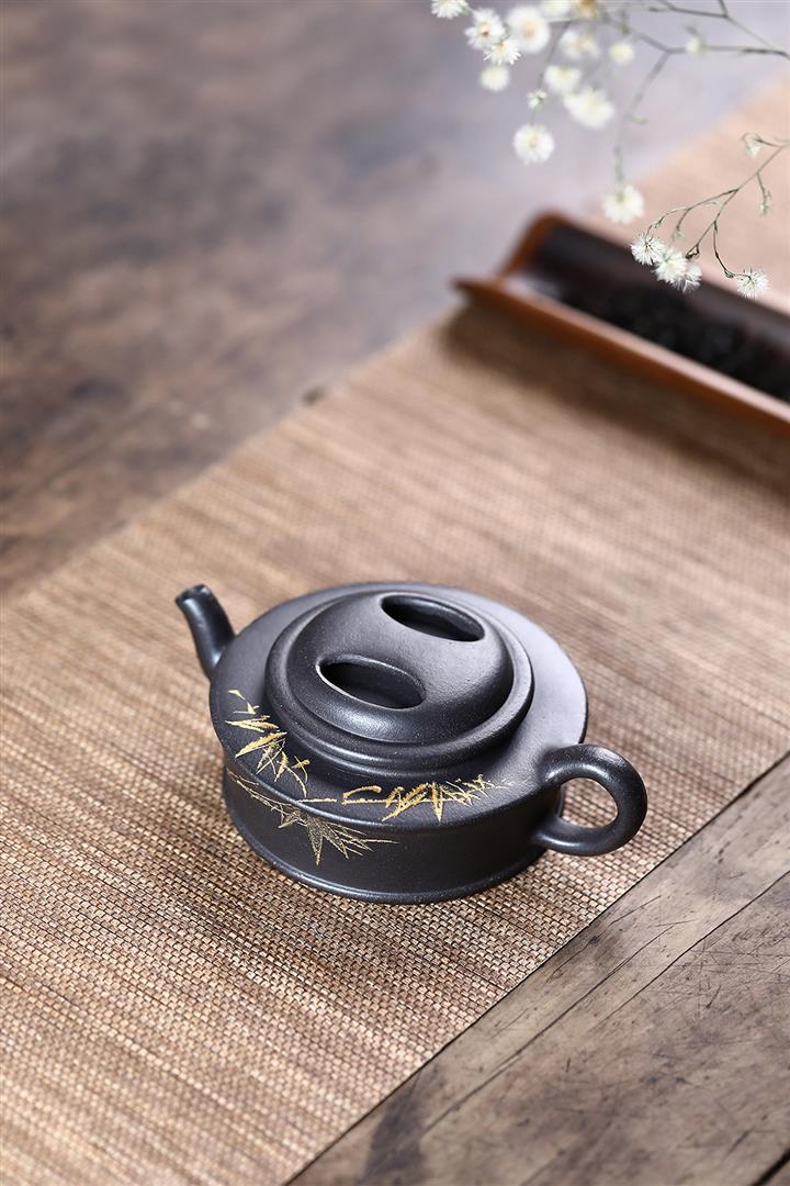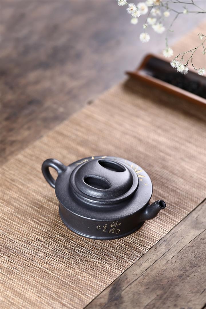 原礦黑泥手工製作牛蓋茶壺POT4062